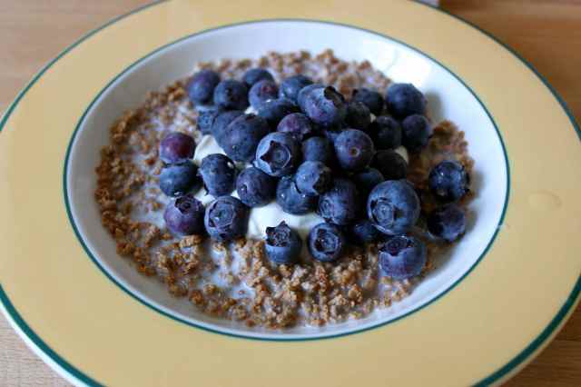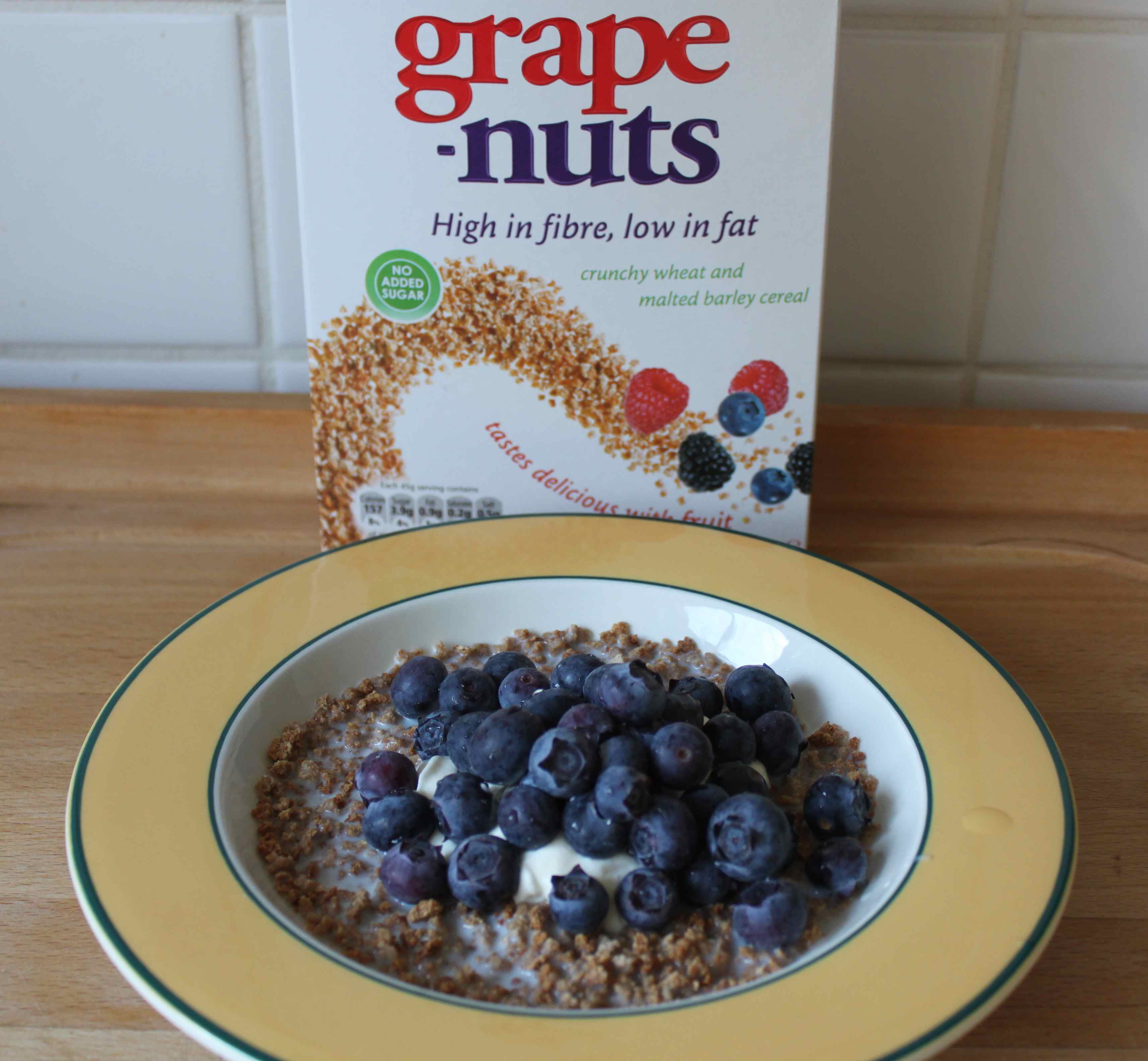 I had cereal for breakfast today; Grape Nuts with some Greek yogurt and blueberries.