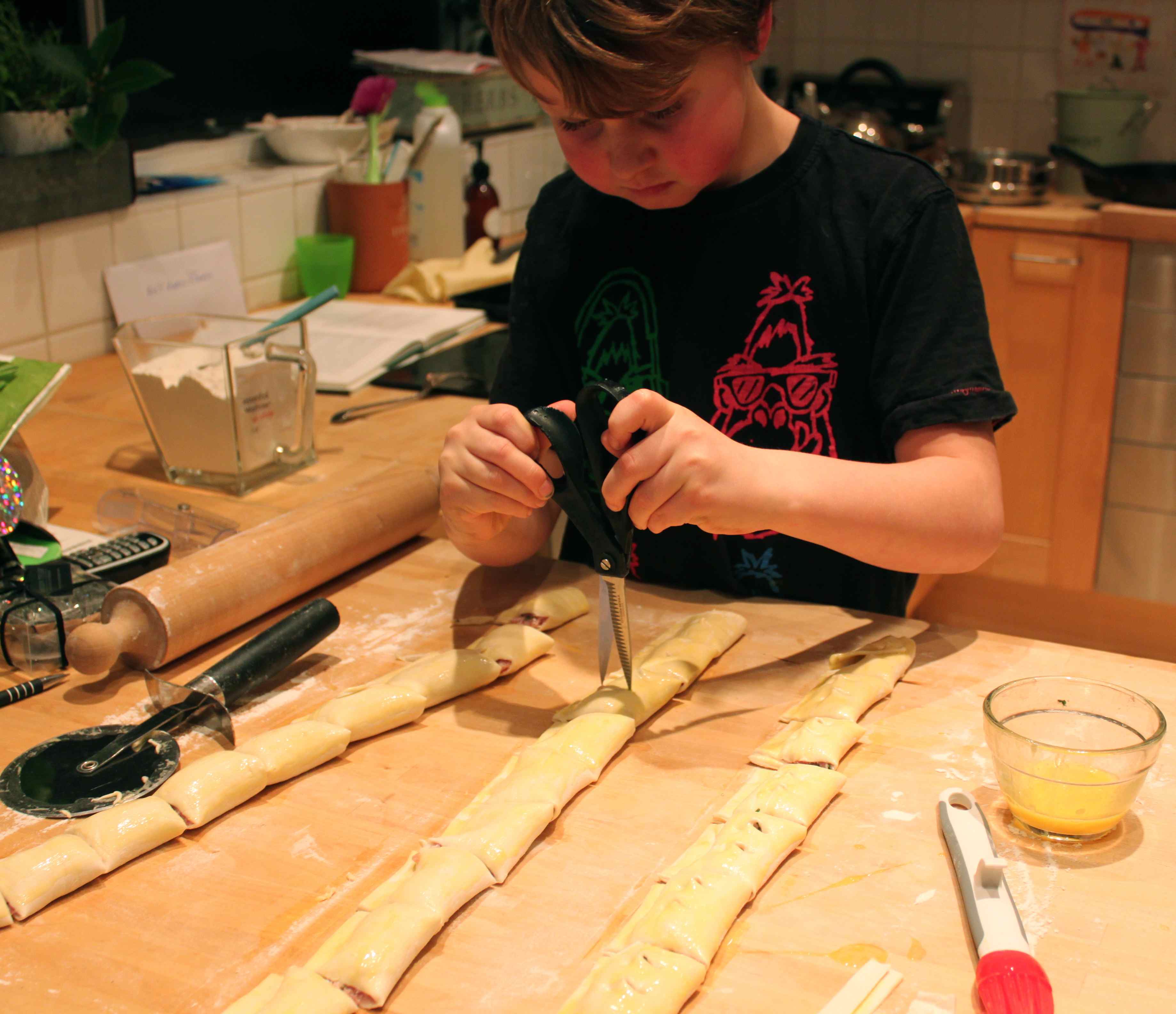 I made my first Christmas food today – sausage rolls. They are by no means diet friendly or healthy but if you are going to eat such things, I think it is better to make your own. Then you can use good quality meat with a lower fat content than the standard shop bought sausage rolls. Plus, you can roll the pastry really thin so you have a much higher meat to pastry ratio, which again reduces fat plus reduces the amount of flour you are eating. I had some wild boar with apple sausage meat and used that, but any sausage meat will do.