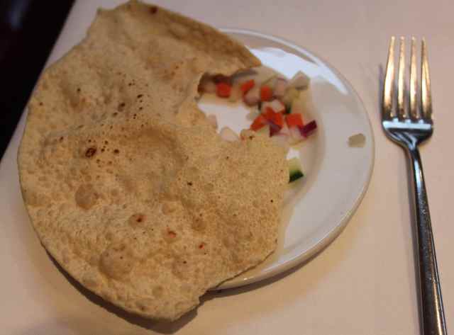 We shared some poppadoms to start and they were not at all greasy.  I had mine with raw onion.
