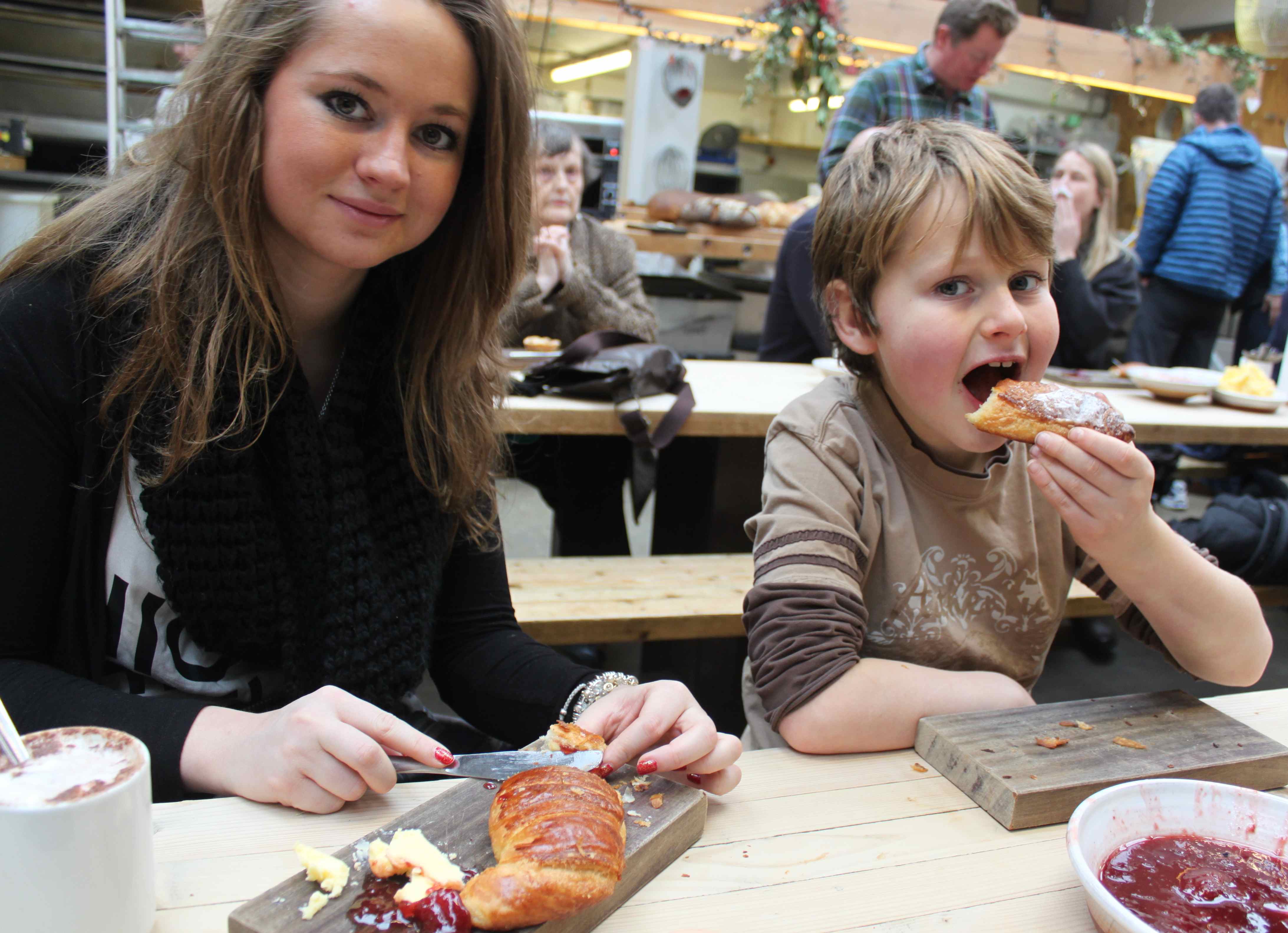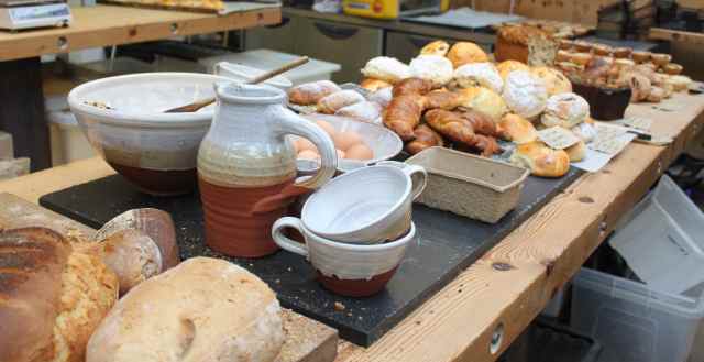 Breakfast at the Town Mill is more sociable than your average cafe and as fresh as it can be as you actually sit in the bakery and can watch them making the bread. You pick up a bread board and help yourself to the freshly made breads, cakes or pastries (or muesli or eggs).