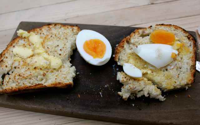 I had a boiled egg with toasted sea salt and rosemary bread.