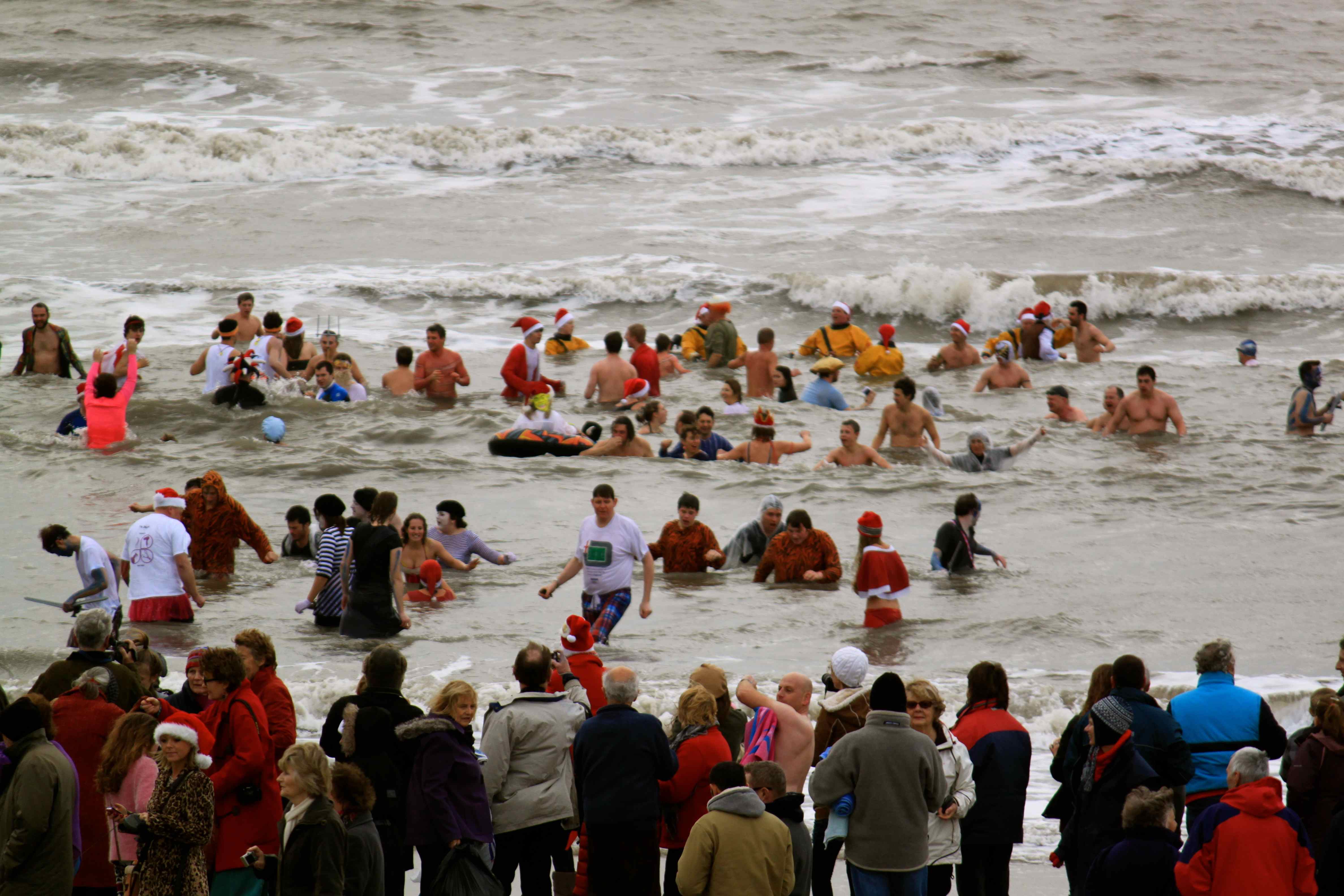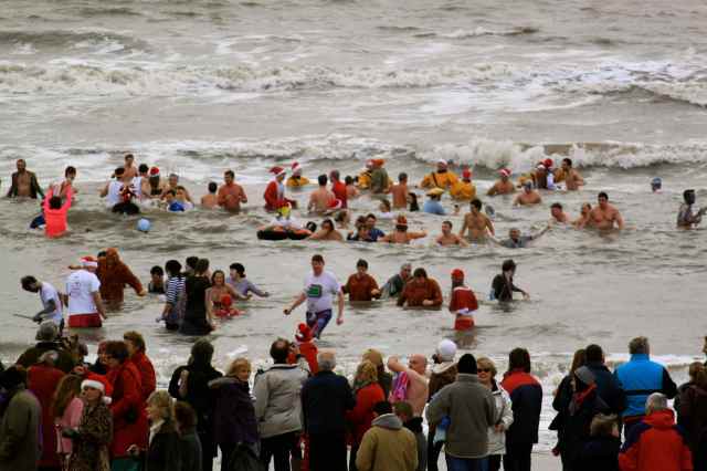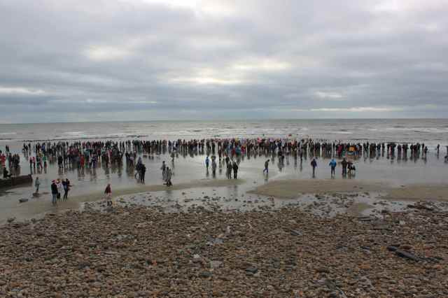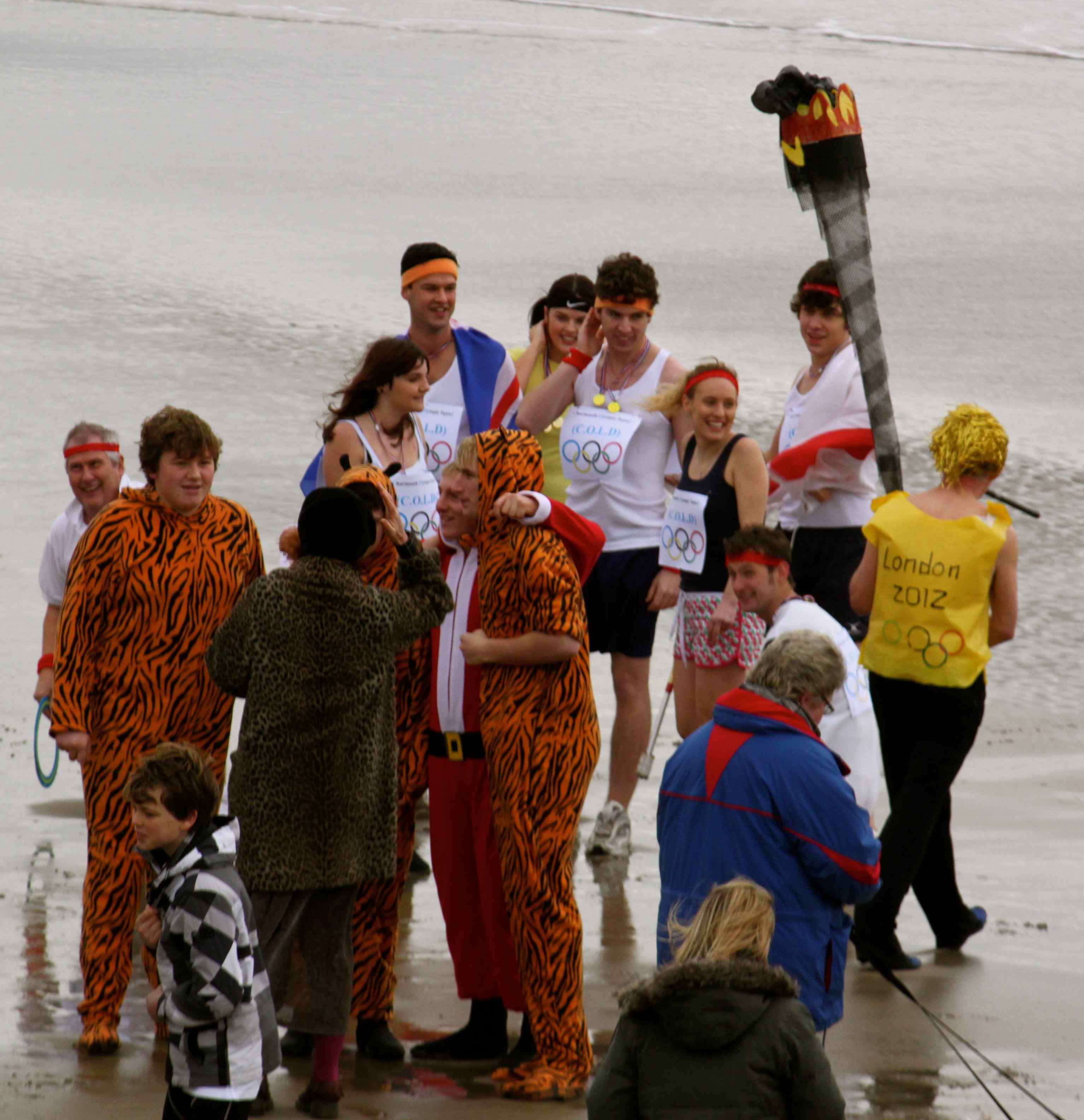 The swimmers began to arrive from about 10:30 am, most of whom were in fancy dress.