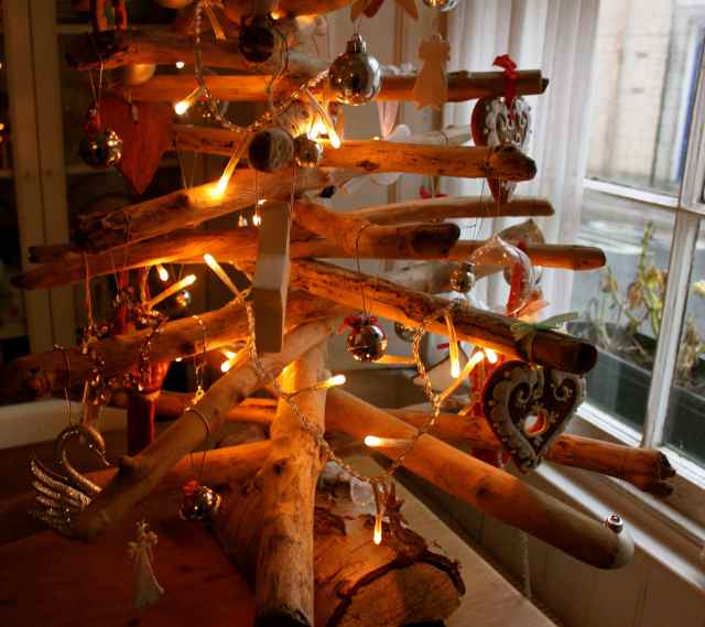 Miranda lives in the centre of Lyme Regis and I wanted a closer look at her Christmas tree which she made herself so some of us spent the afternoon at Miranda’s. She had collected driftwood from the beach and then made this beautiful tree. This is my favourite tree of the year.