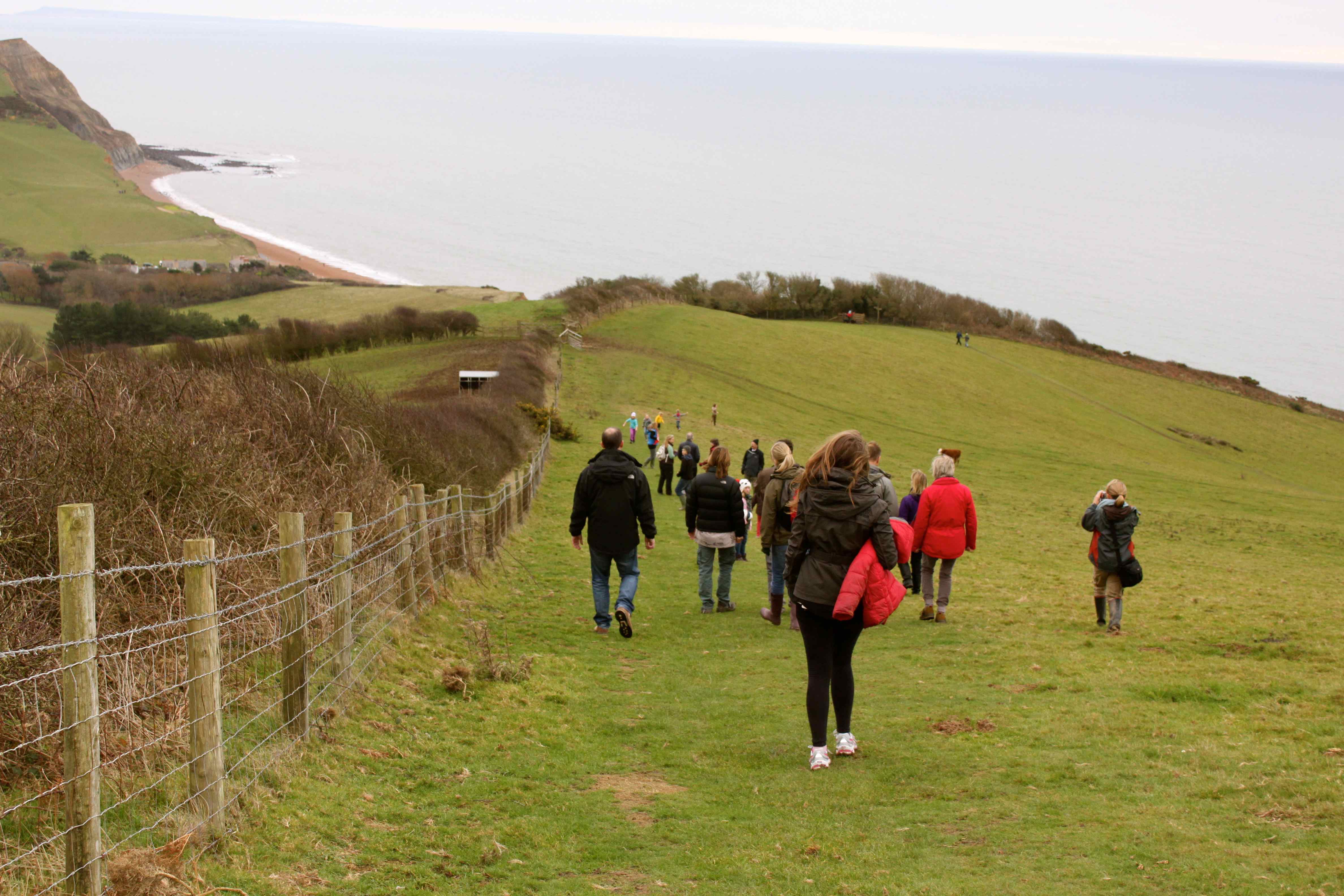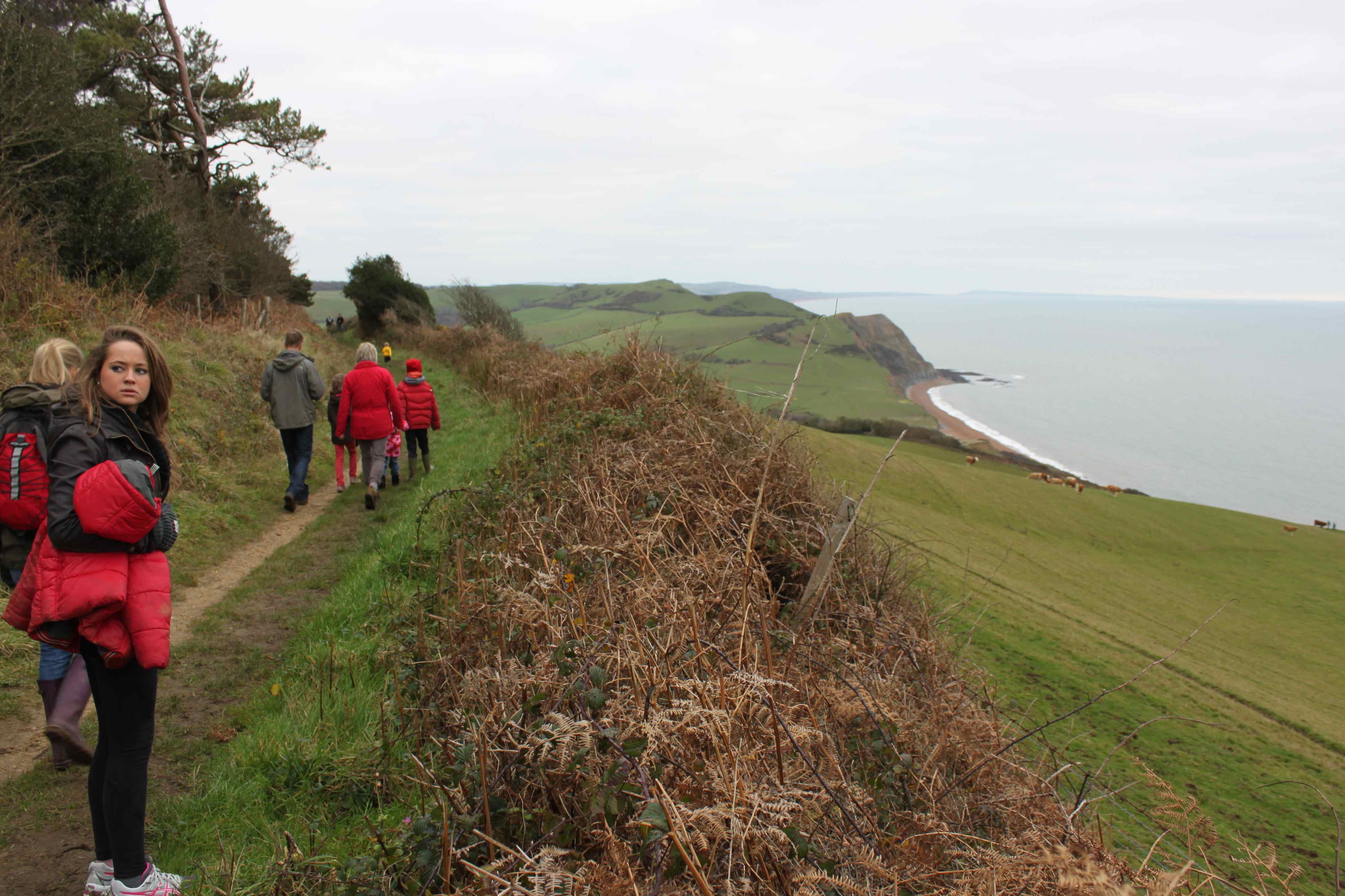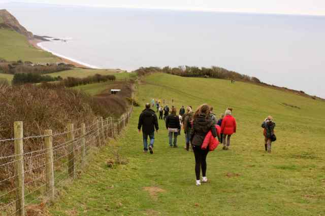 The large breakfast was the perfect fuel for a longer and more bracing walk today from Langdon Woods to Seatown. 30 of us set out for the walk and we were heading for the bay in the distance.