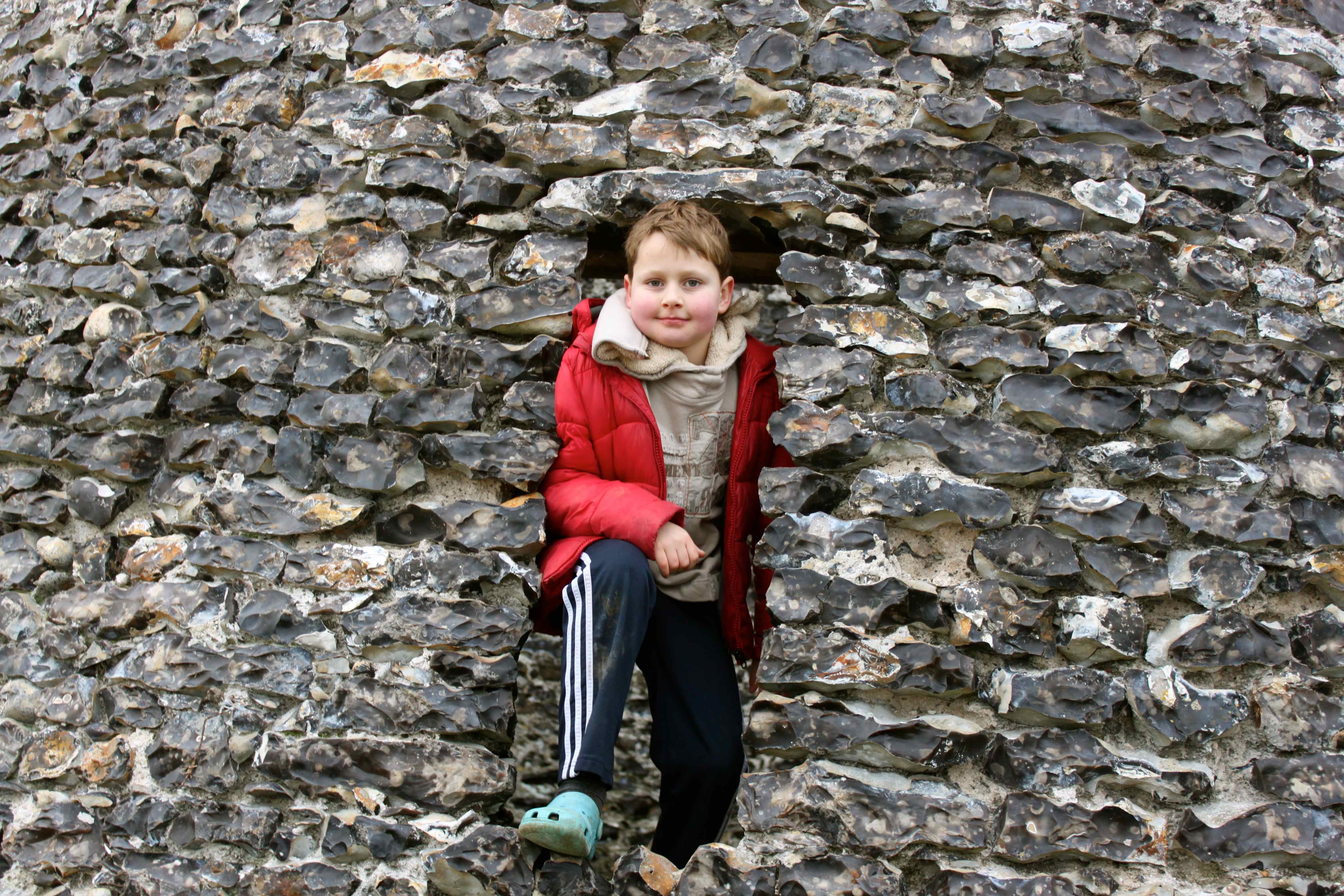 Harvey enjoyed playing in the flint built ruin beside the golf course.