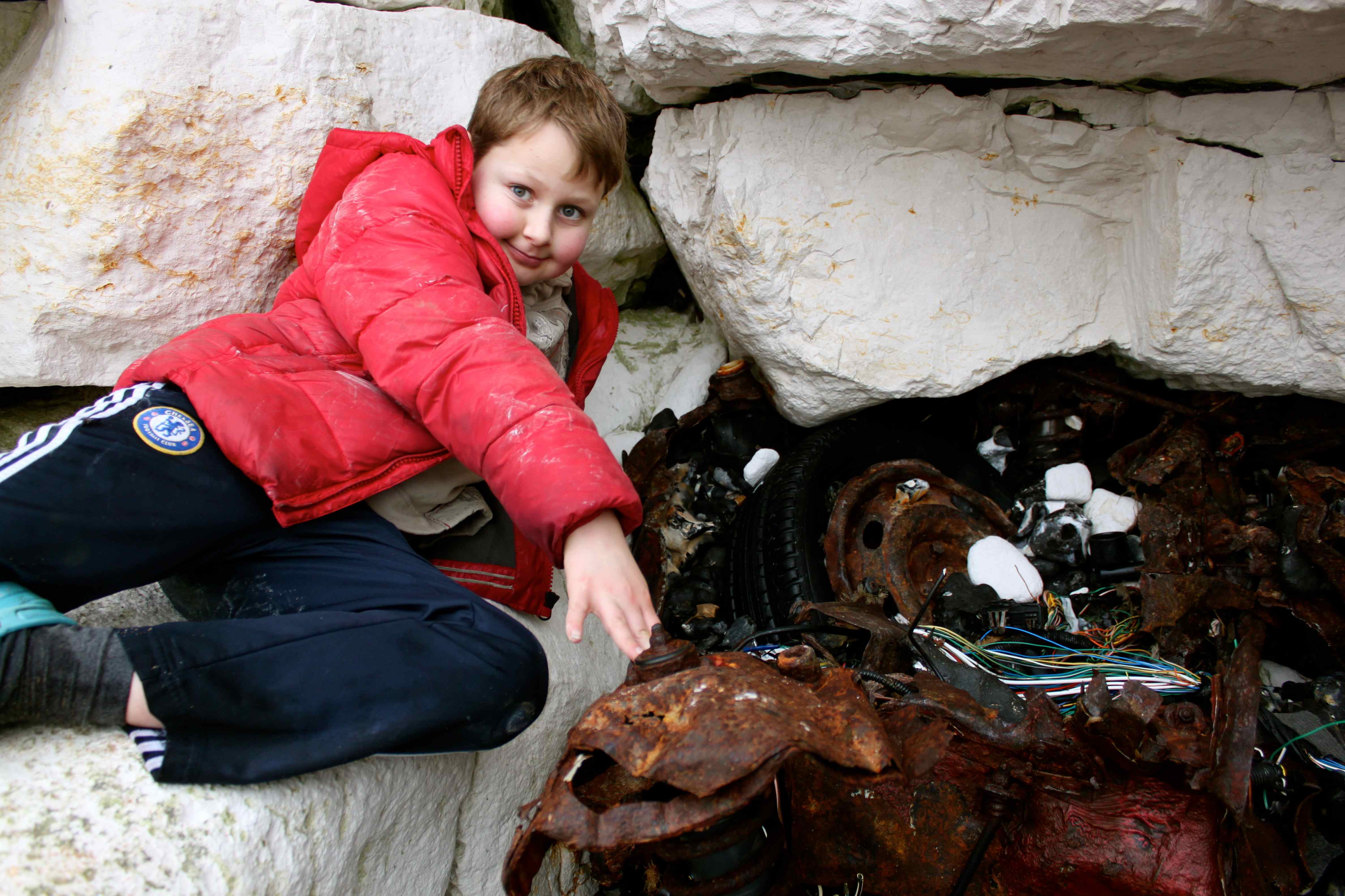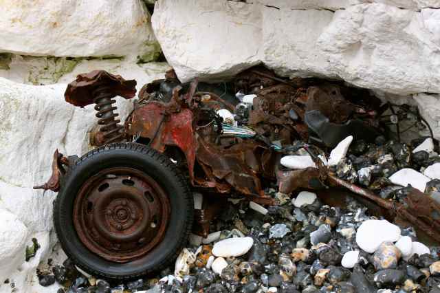 … a smashed up car that had obviously been wedged in to the base of the cliffs for a long time.
