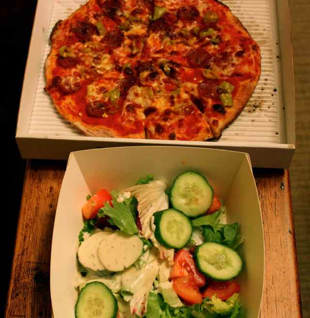 We had no food in the house and did not want to eat out so James heroically collected pizza. There is a Pizza Express near the house. I enjoyed a hot bath with Radox muscle soak and a cup of tea while we waited. Bliss.