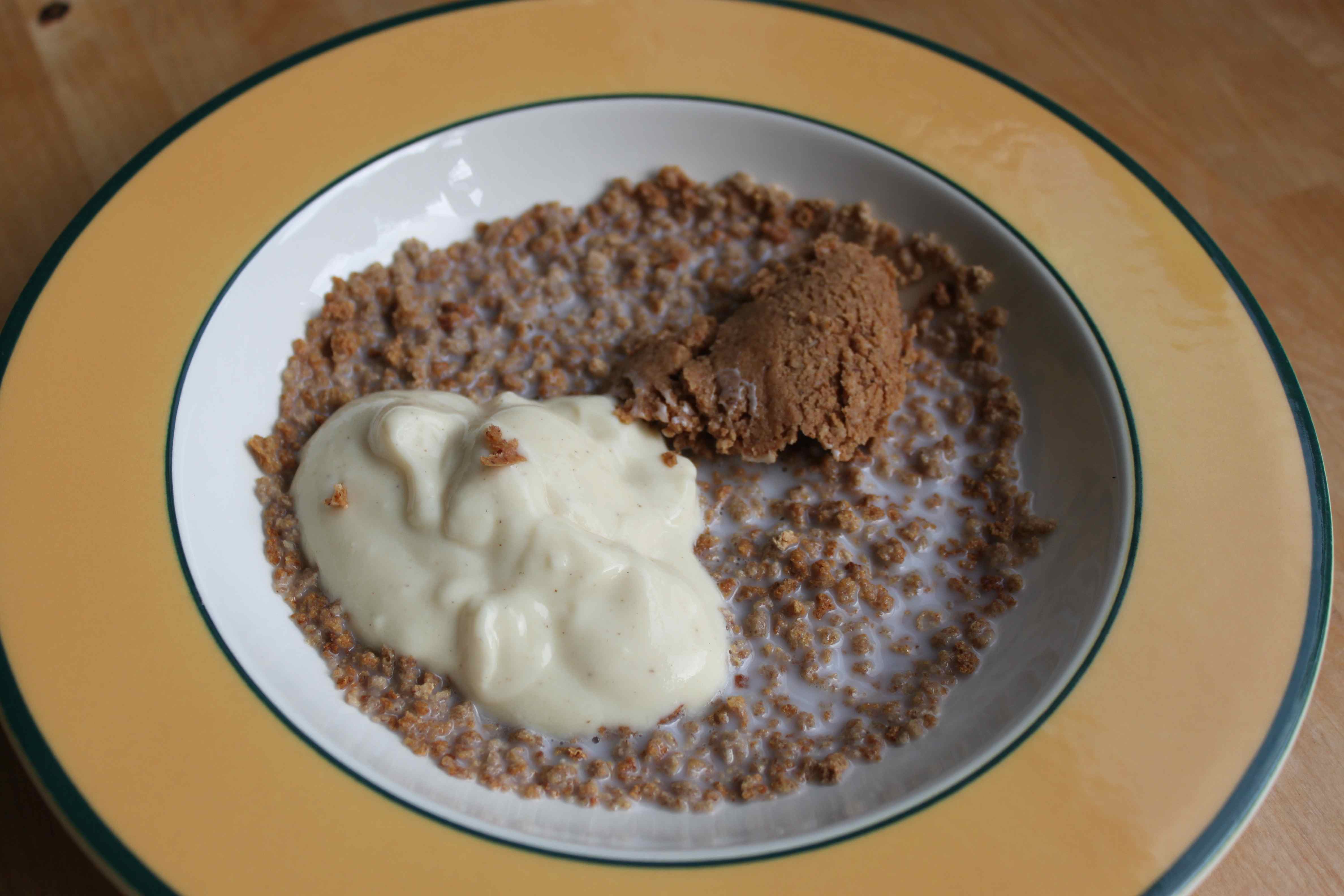 Knowing we were going out for lunch I had a really light breakfast of half a portion of Grape Nuts (25 g), 100 ml soya milk, 2 heaped tbsp vanilla soya yogurt and 1 tbsp coconut nut butter. 6 WW points.