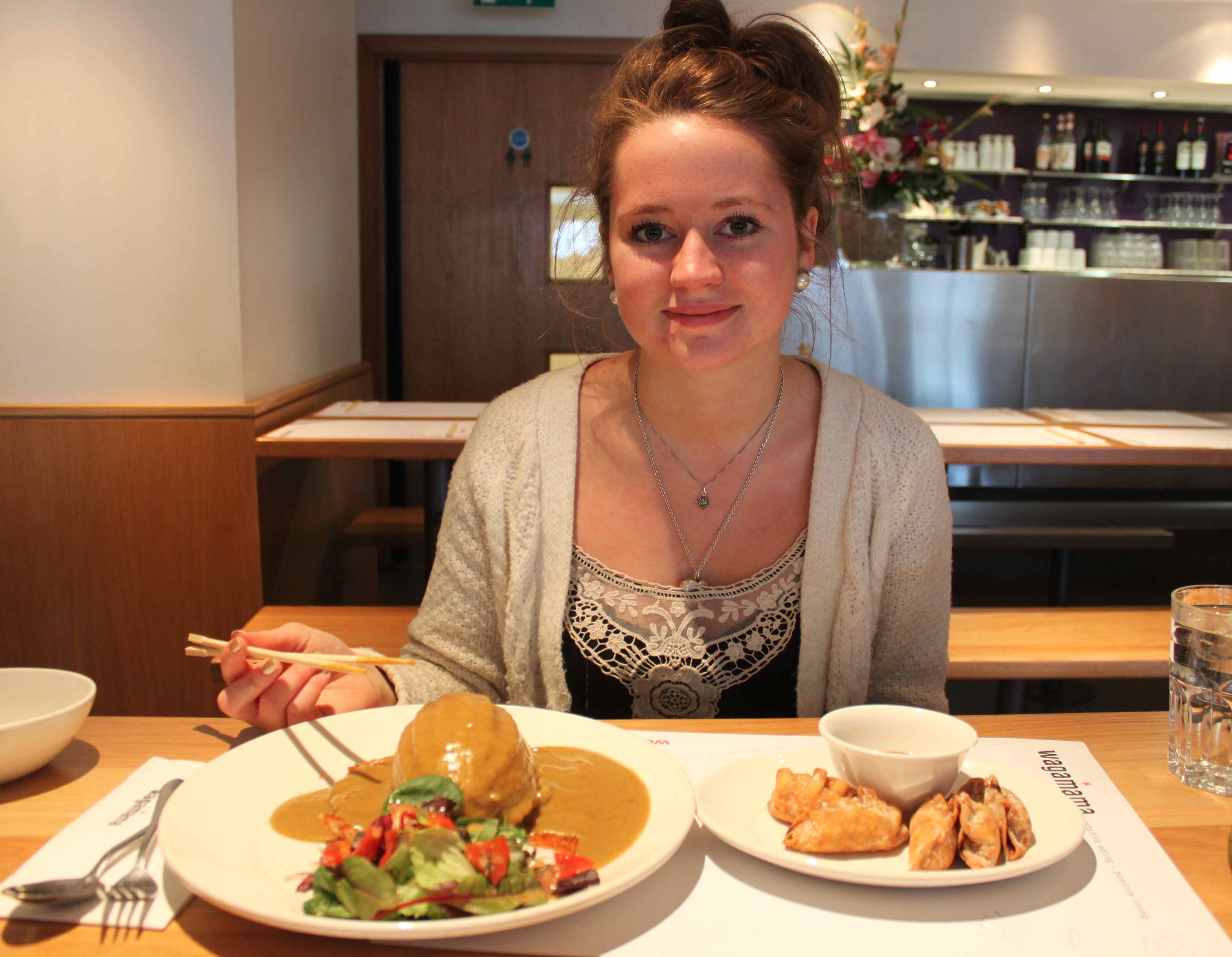 As an early birthday treat and because it was the one place Lara had said she wanted to go to when she first came home in December but which we hadn’t got to, we went to Tunbridge Wells for lunch at Wagamama.  For those of you who have not been before, Wagamama was inspired by Japanese noodle bars. The setting is minimalist and contemporary, service is friendly but brisk and efficient.  Not somewhere to go for a leisurely 3 hour lunch but if you want tasty and healthy(ish) food, served quickly with no fuss or drama, then this is a great place to go.