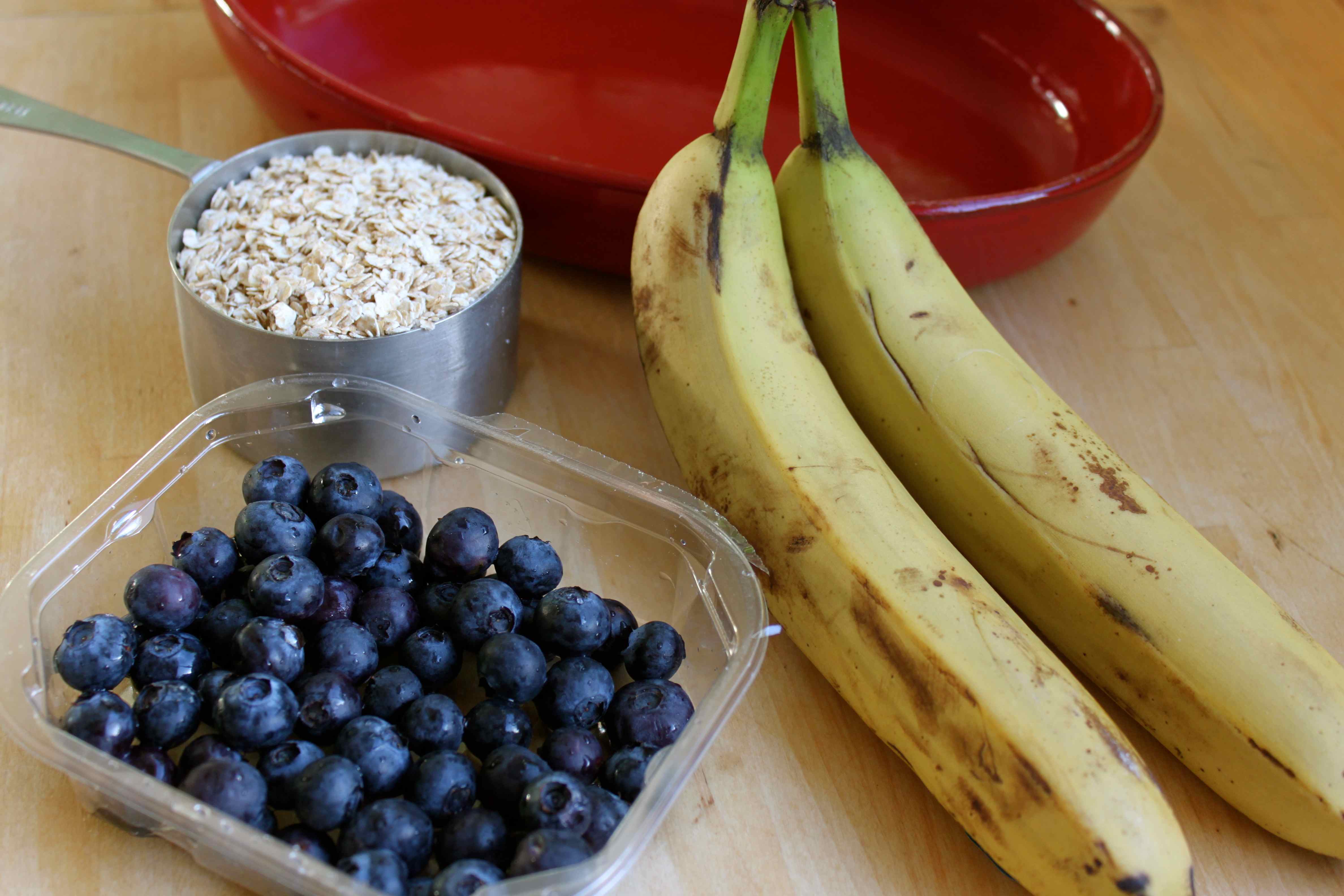- 1 ½ cup berries ( I used 1 cup fresh blueberries, ½ cup frozen raspberries)
