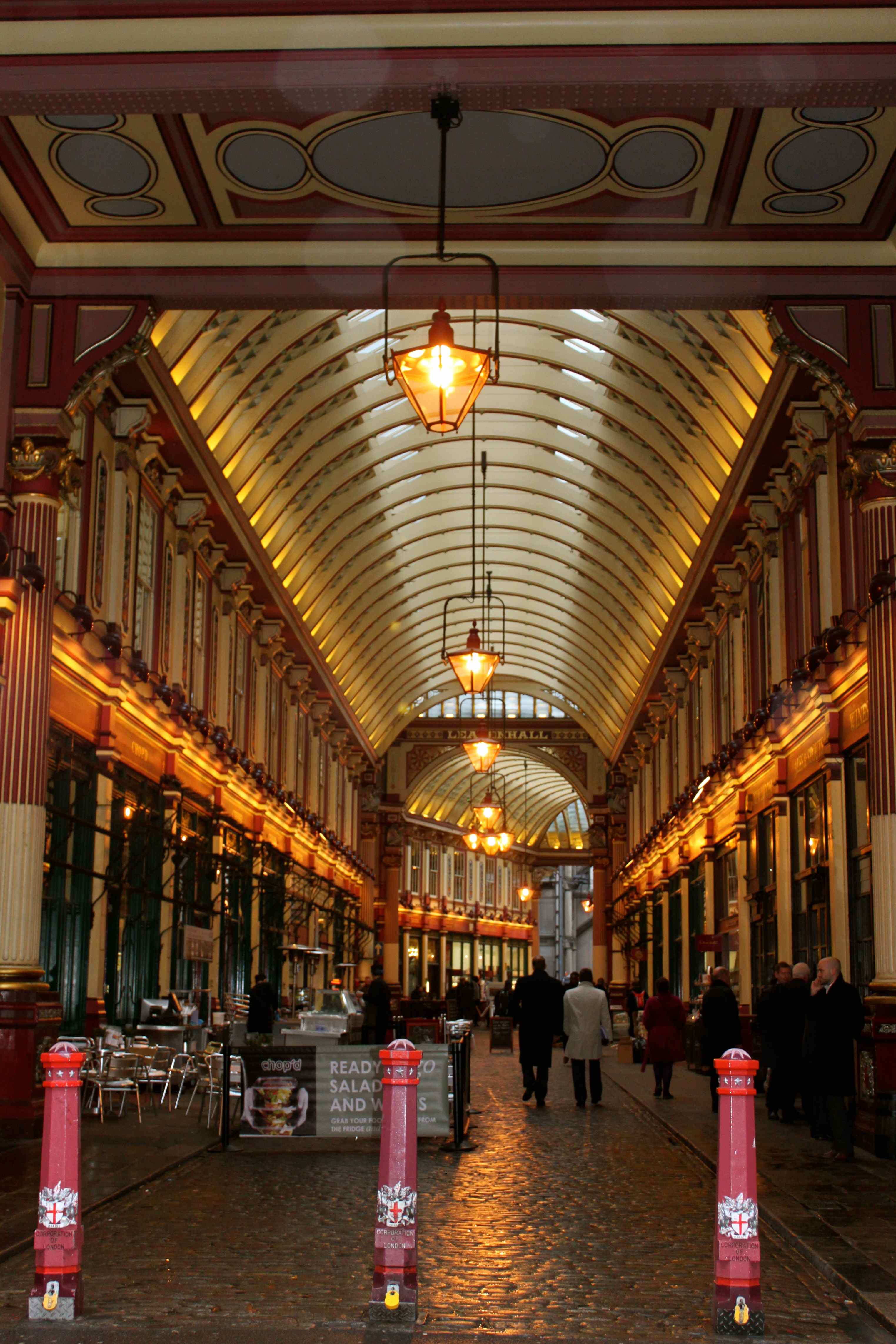 and ancient, such as the very lovely Leadenhall Market. There has been a market here since the 1st Century!!! The first covered market was built in the 17th Century when parts of London were rebuilt following the Great Fire. I used to work very close to here and wander through this market place for lunch every day, usually at Cranks, which sadly closed down years ago. The market is well looked after these days and often seen in films.