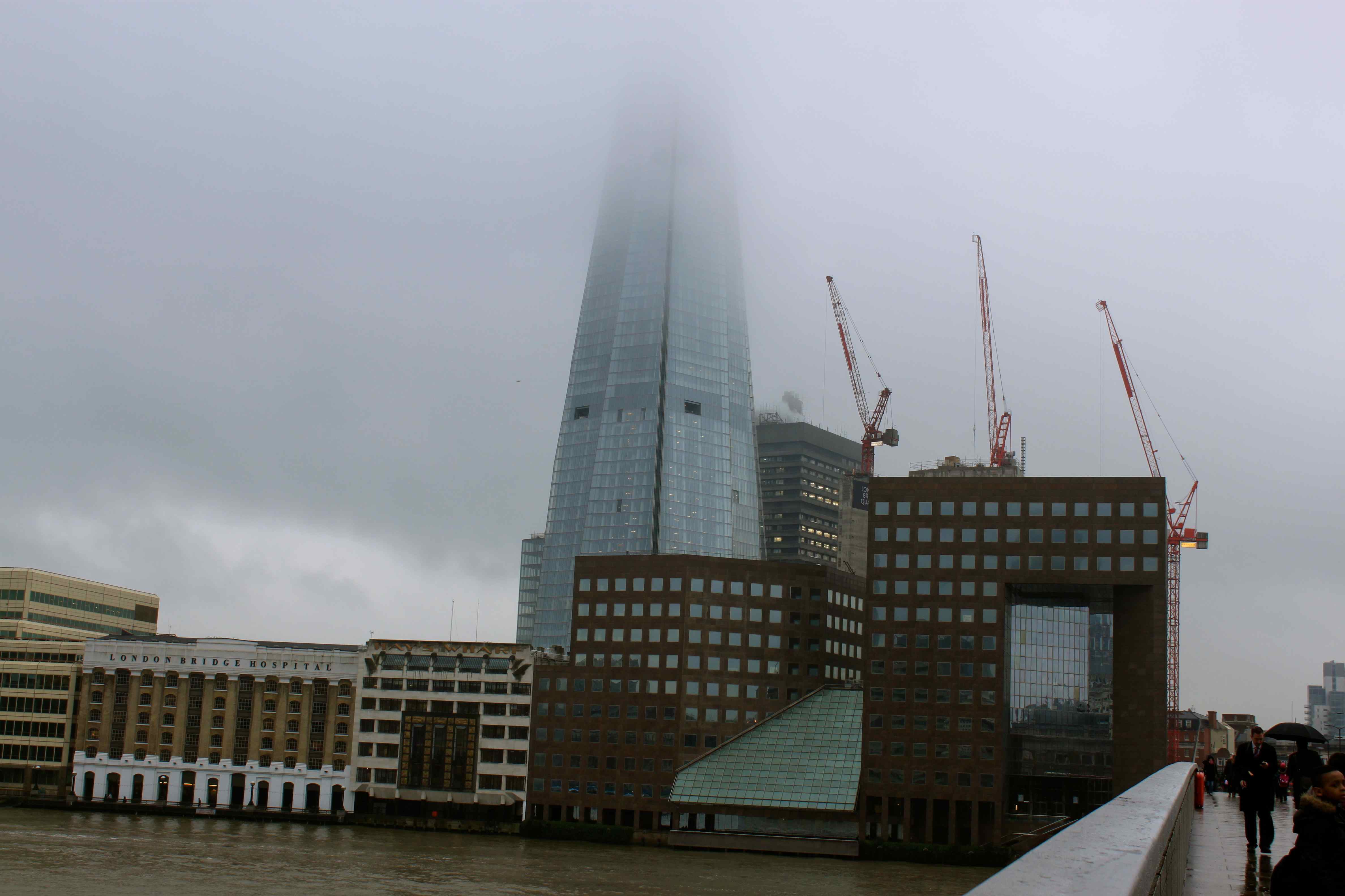 Walking over London Bridge, The Shard was in cloud. This is the building that has been controversial because it obscures the view of St.Paul’s Cathedral from some areas of London which previously had a perfect view.