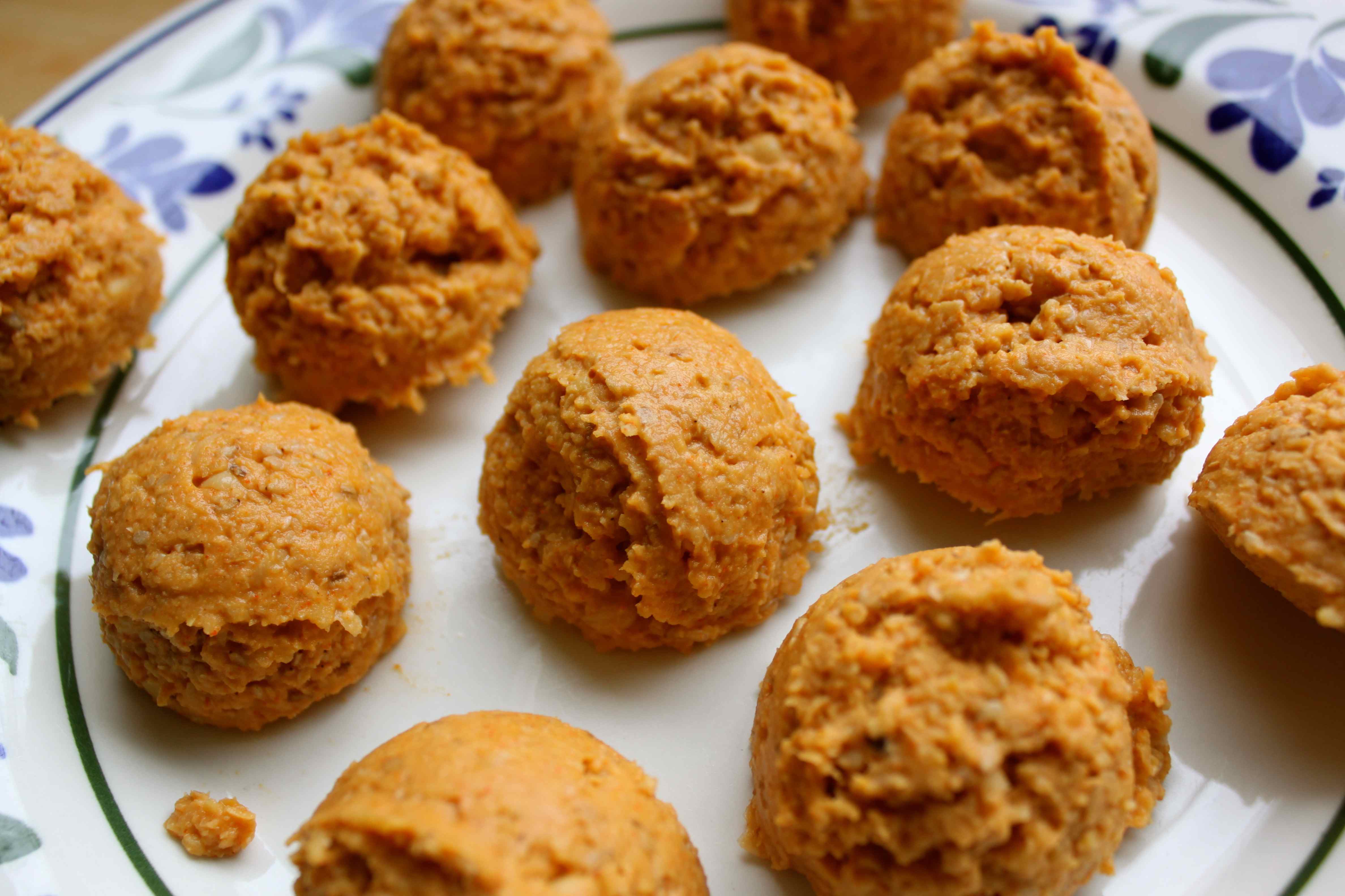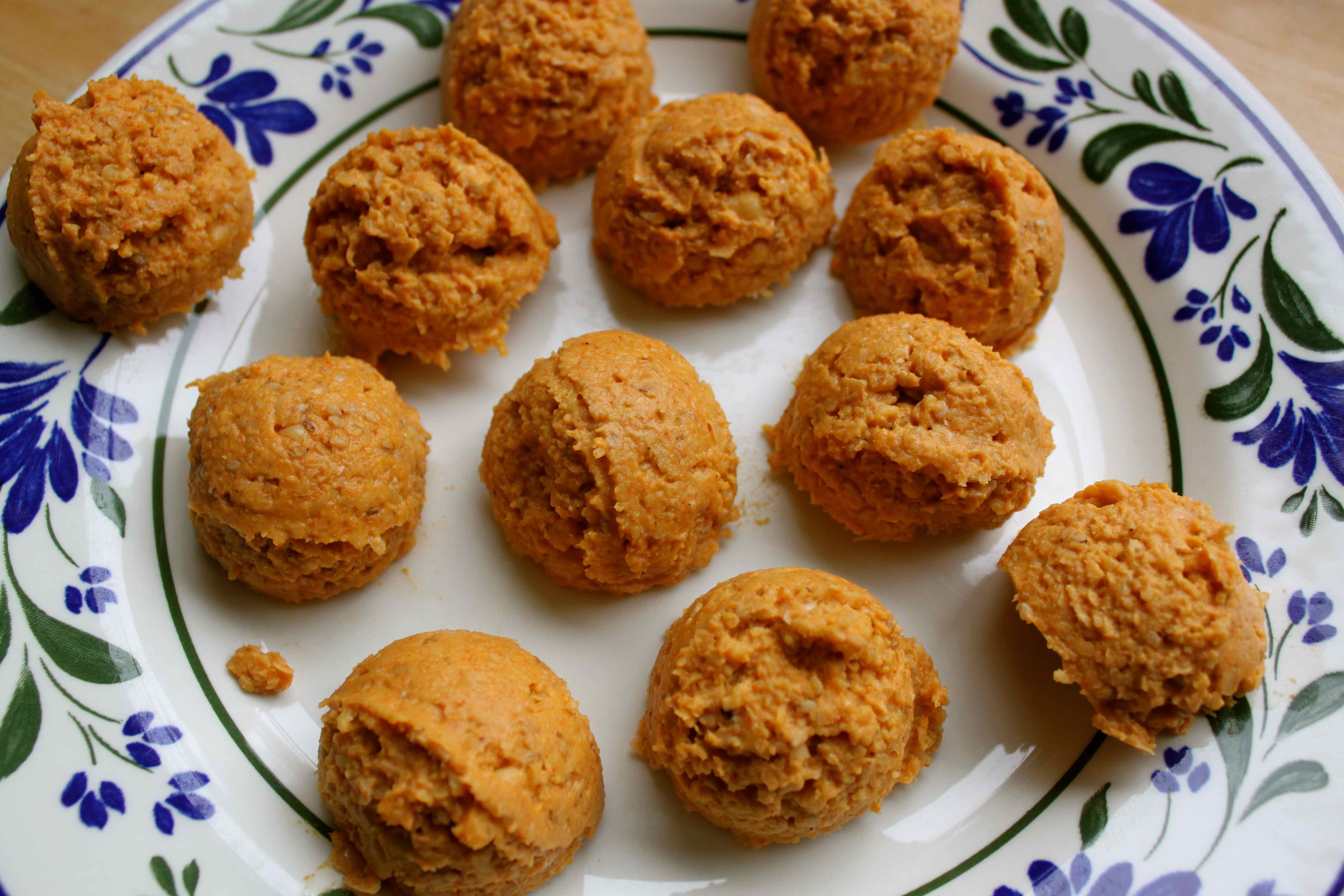 Use wet hands to form small patties of the mixture and place on a plate.