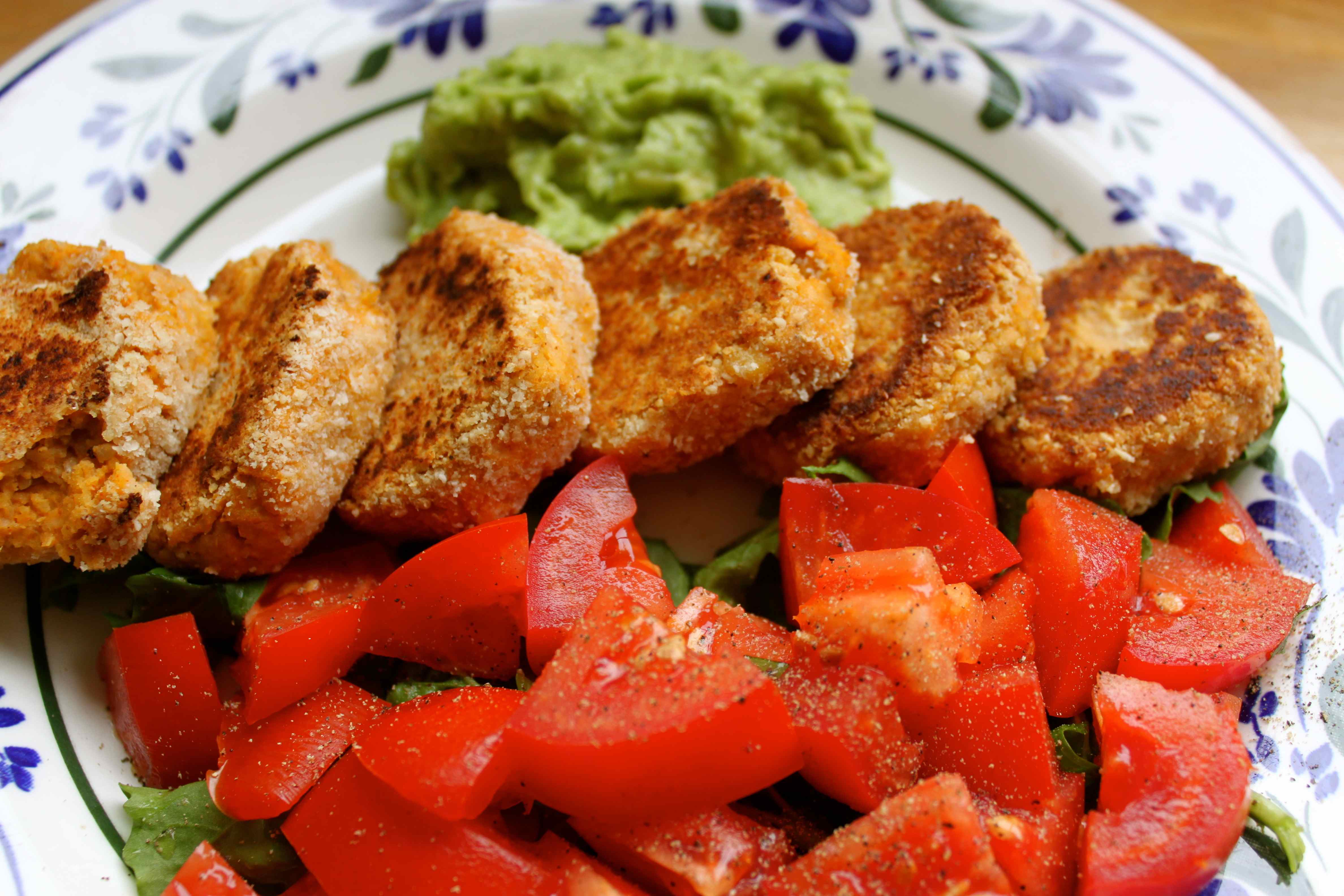 I haven’t cooked a new recipe for a little while so today was the day.  I have recently come across a great blog called Scandi Foodie which is written by a Finnish lady who now lives in Sydney.  She has loads of recipes I want to try and today I made Chickpea Patties with Avocado Dip.  Unusually for me, I made them quite faithfully to the original as I had all the ingredients.