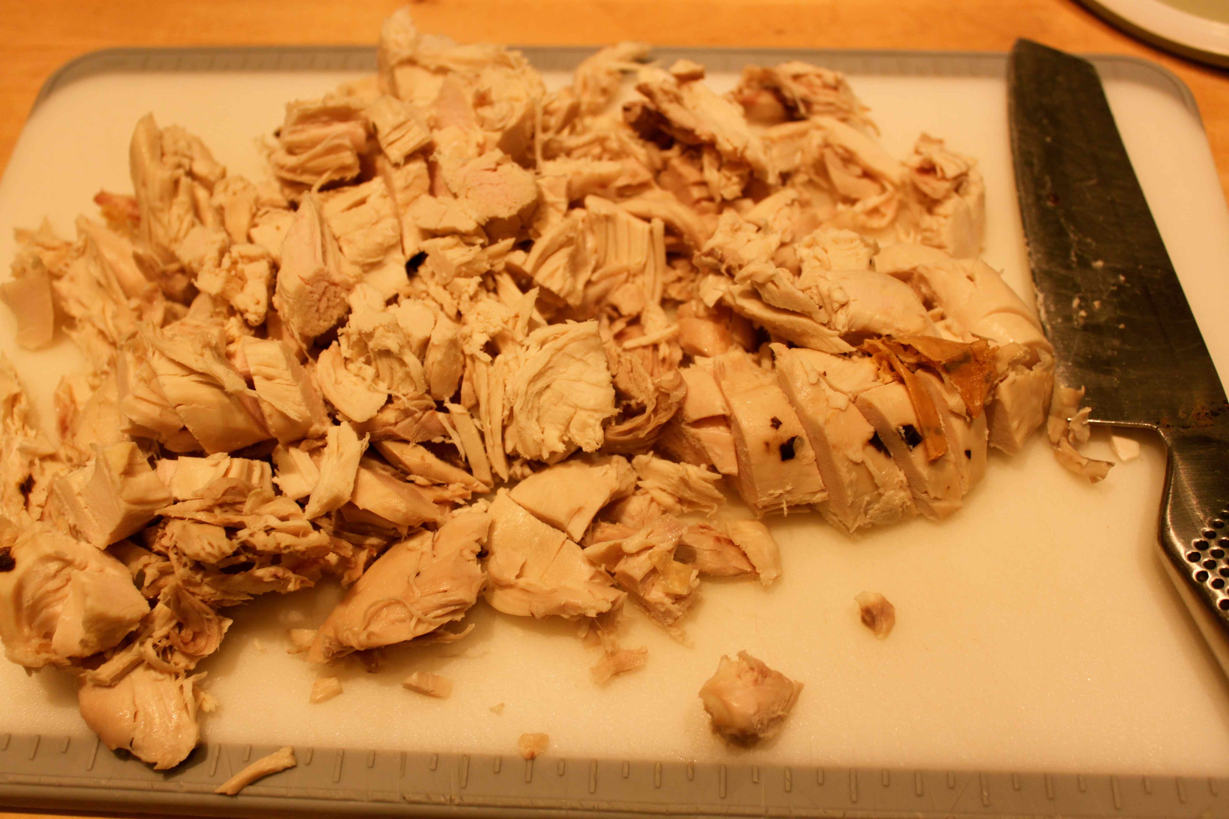 Chop up the leftover chicken.