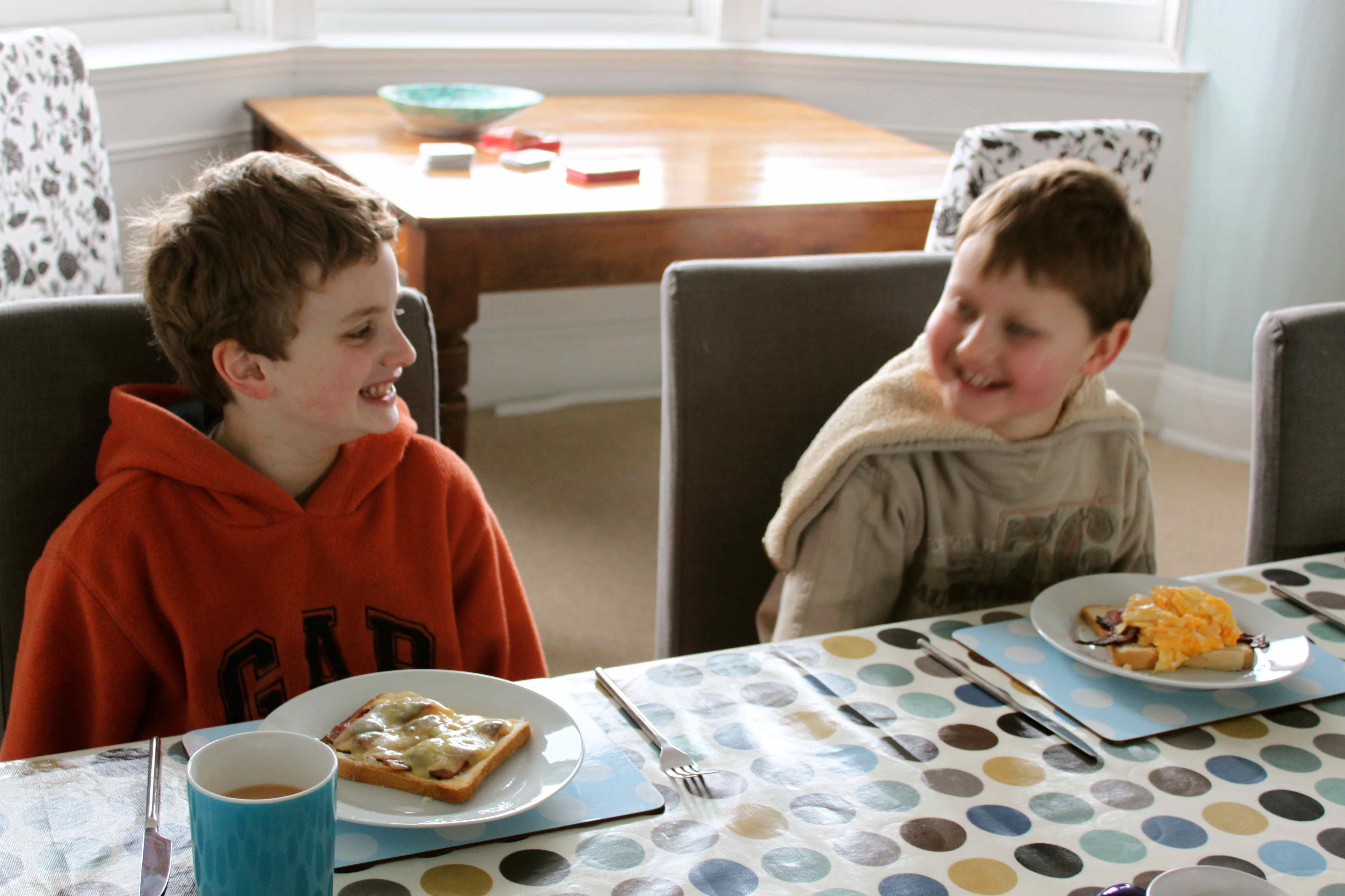 Once back it was breakfast time. It is tricky photographing children. Sometimes neither of them look at you,