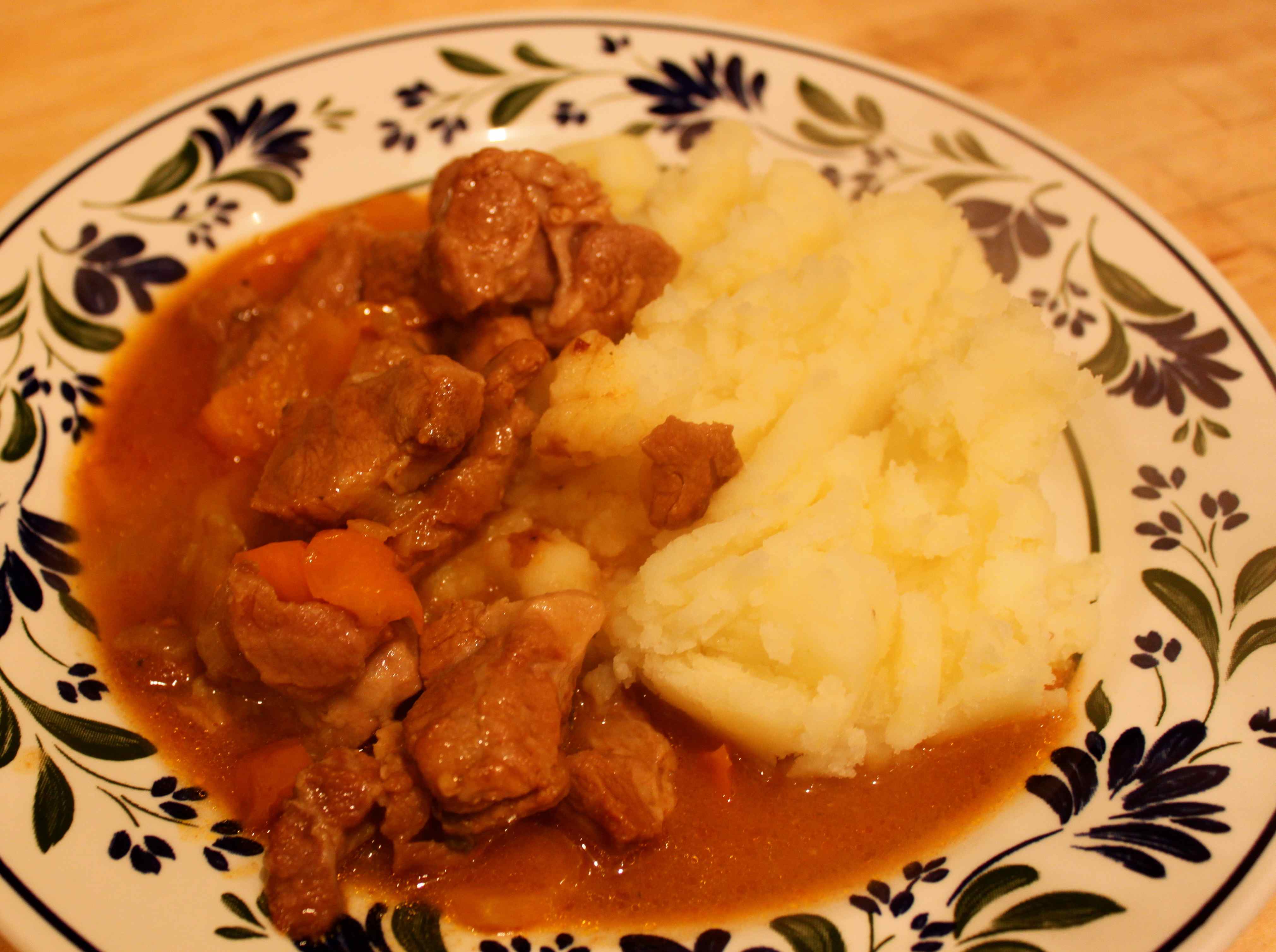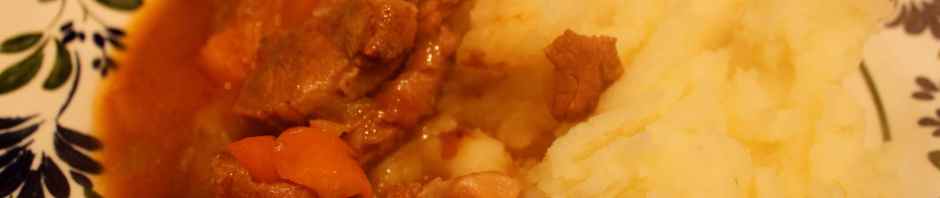 I served the goulash with mashed potato which I mashed with no additions. Potatoes are so easy to mash at this time of year, you do not need butter or milk, especially when serving the potato with a dish with plenty of sauce like the goulash. I had 300g potato (6 WW points).