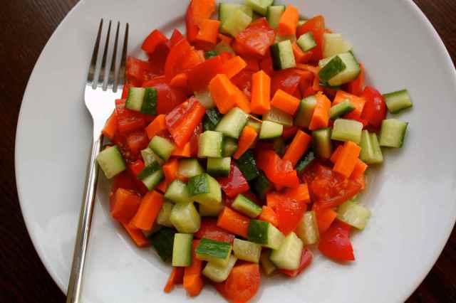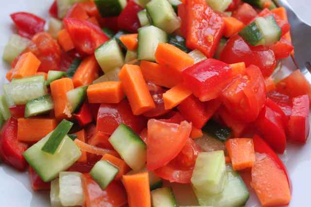 I had taken a healthy salad of tomatoes, red pepper, cucumber and carrots, with a dressing of olive oil, white wine vinegar and lemon juice.