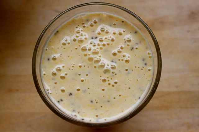 I soaked the oats and chia seeds in the milk for about an hour before blitzing everything in the blender.  It was very refreshing.