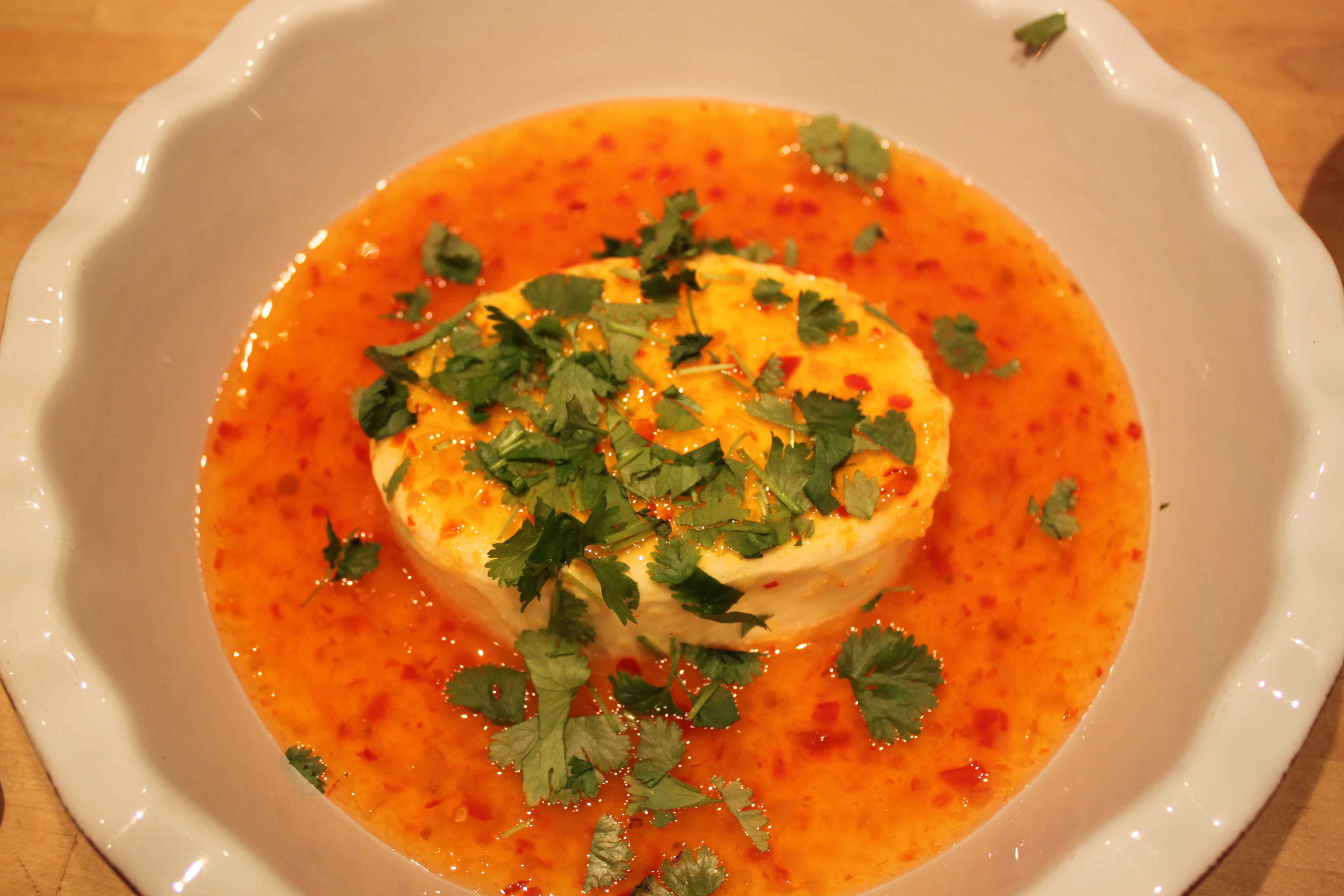 This dish is so quick and easy to prepare and very delicious.  You need one tub of Philadelphia cream cheese, a bottle of sweet chill sauce and some chopped up coriander.  Serve with crisps or tortillas.  Delicious and so very easy to put together.  I served this with some crinkle cut ready salted crisps.  You need a sturdy crisp to scoop up the cheese and you then have a delightful mouthful of smooth cool cheese, sweet chilli and crunchy salty crisps.  Yum.