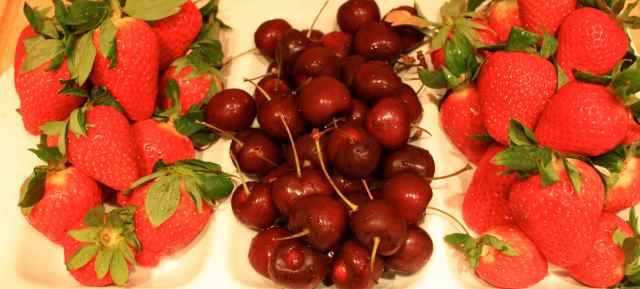 A platter of strawberries and cherries.  I bought most of the party food in Costco on the way home from seeing Lara.  These strawberries are sweet, juicy and full of flavour.  And massive, which the photo does not show.  Very tasty.