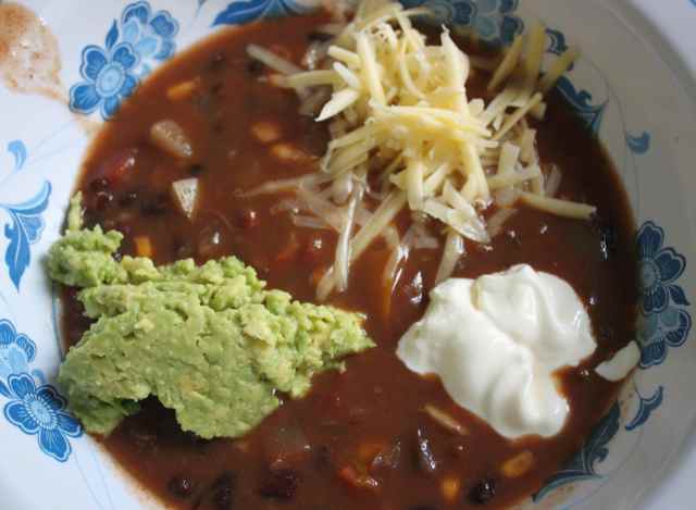 The soup was much better today than yesterday. The flavours were softer and well melded together. The cheese, guacamole and sour cream went really well with it. I am not sure if I have calculated incorrectly as this meal seems high in points when it is all very healthy but this is how I think it scores: