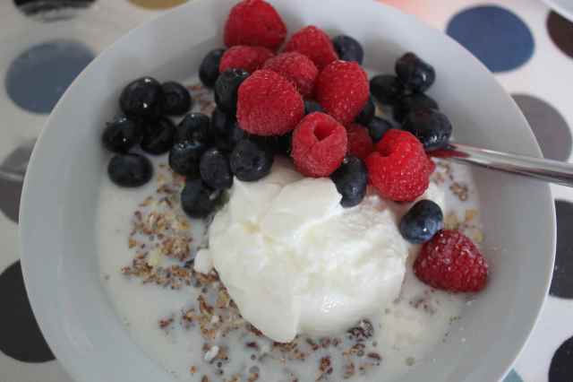 We had a long and leisurely breakfast. I started with Alpen, berries and yogurt,