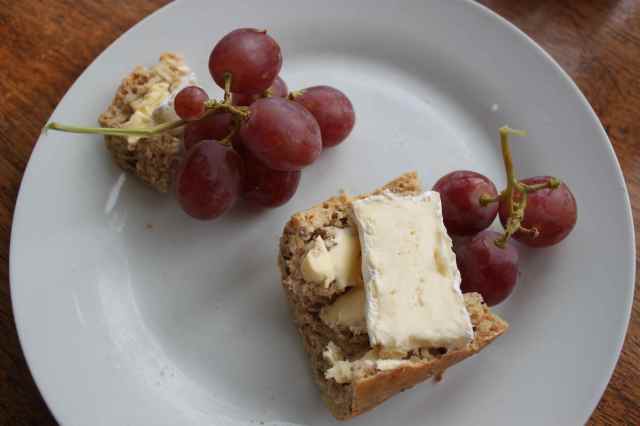 and then some brown bread with Brie and grapes.