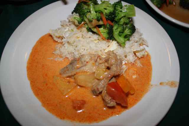 which I ate with egg fried rice and roast duck in red curry. Yummy.