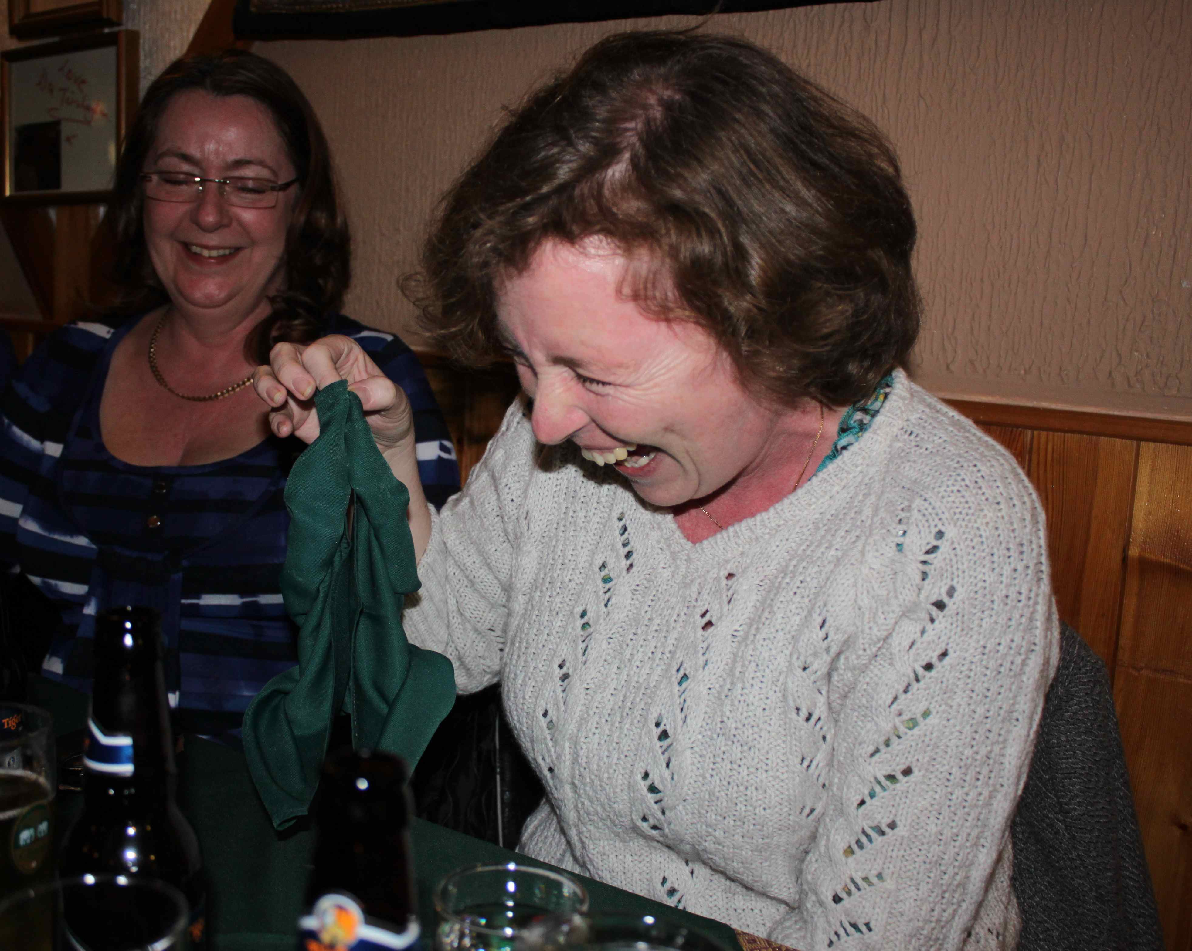 Olivia entertained us by making a chicken from the napkin!