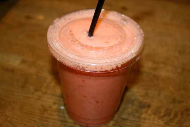 I went for the strawberry one which was made with freshly squeezed orange juice, strawberries, banana and natural yogurt. It was good. And I bought 2 clementines to have mid morning as well.