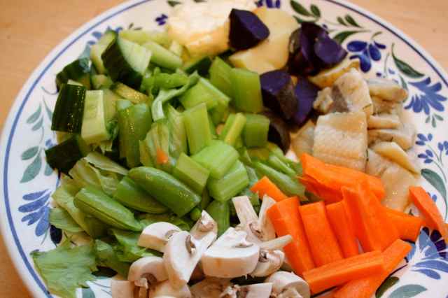 In my salad I had lettuce, mushrooms, sugar snaps, carrots, cucumber and celery.