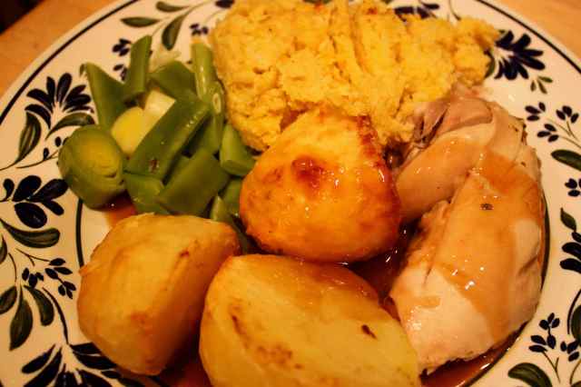We had our chicken with roast potatoes, Swede and Almond Bake, leeks and Helda beans which I really like. A lovely dinner, as three empty plates were testament to.