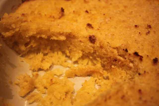 - Tip in to an oiled baking dish, sprinkle the extra ground almonds on top and bake in the oven for half an hour.