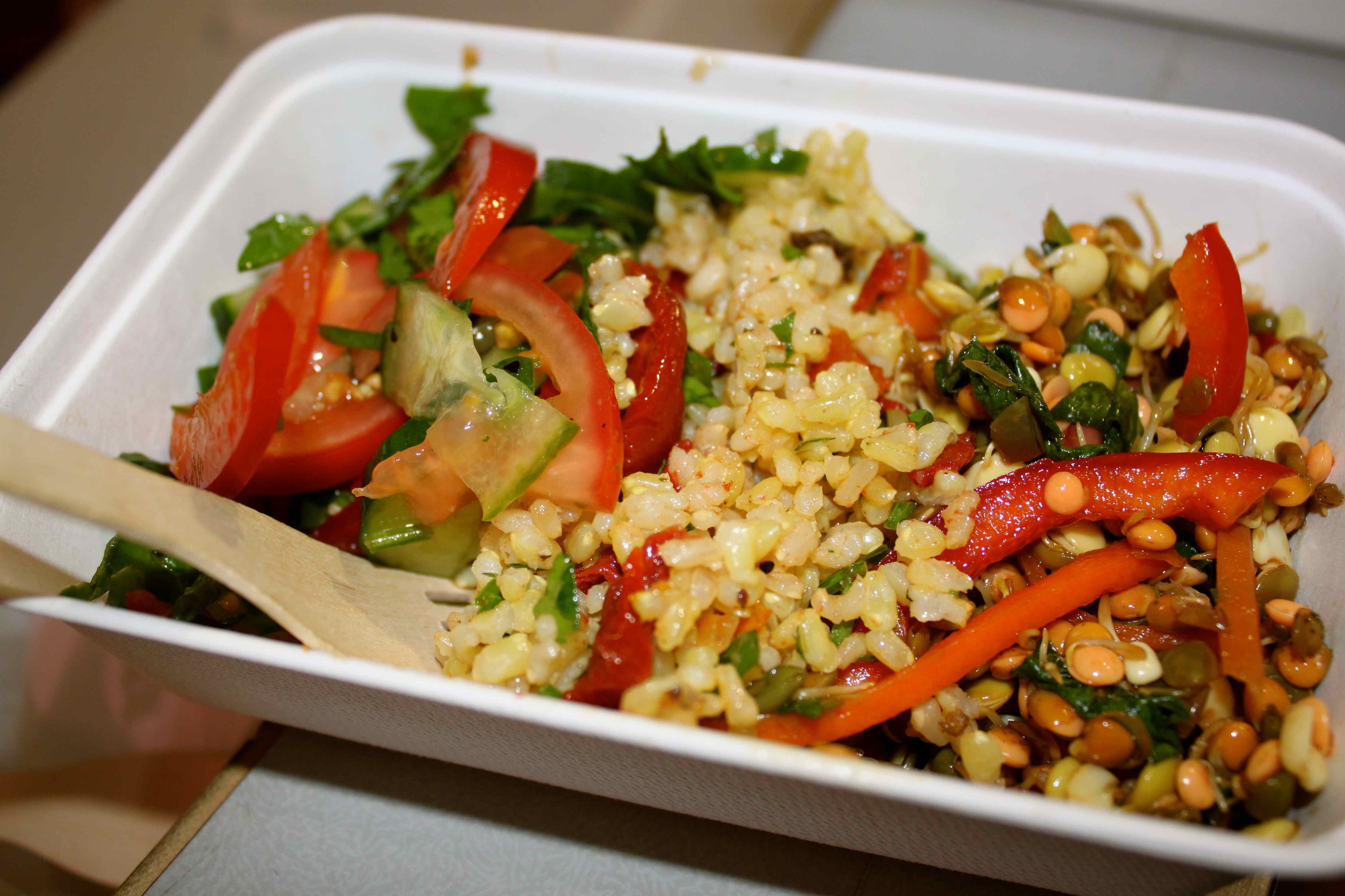 The omelette was ok and the salads were delicious. One was full of sprouted lentils, brown rice with sundried tomatoes and herbs and a tomato and spinach salad. Yummy.