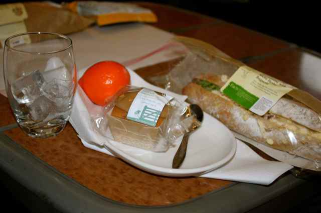 Luckily I had a well balanced breakfast at 7 am as I didn’t get a chance to eat (or even drink!!!!) again until we were on the train on the way home at 5:30 pm. I literally did not have 5 minutes break from one meeting to the next. So I was happy to settle on the train, relax for a bit and have an egg mayonnaise sandwich, apple and toffee cake and a clementine.