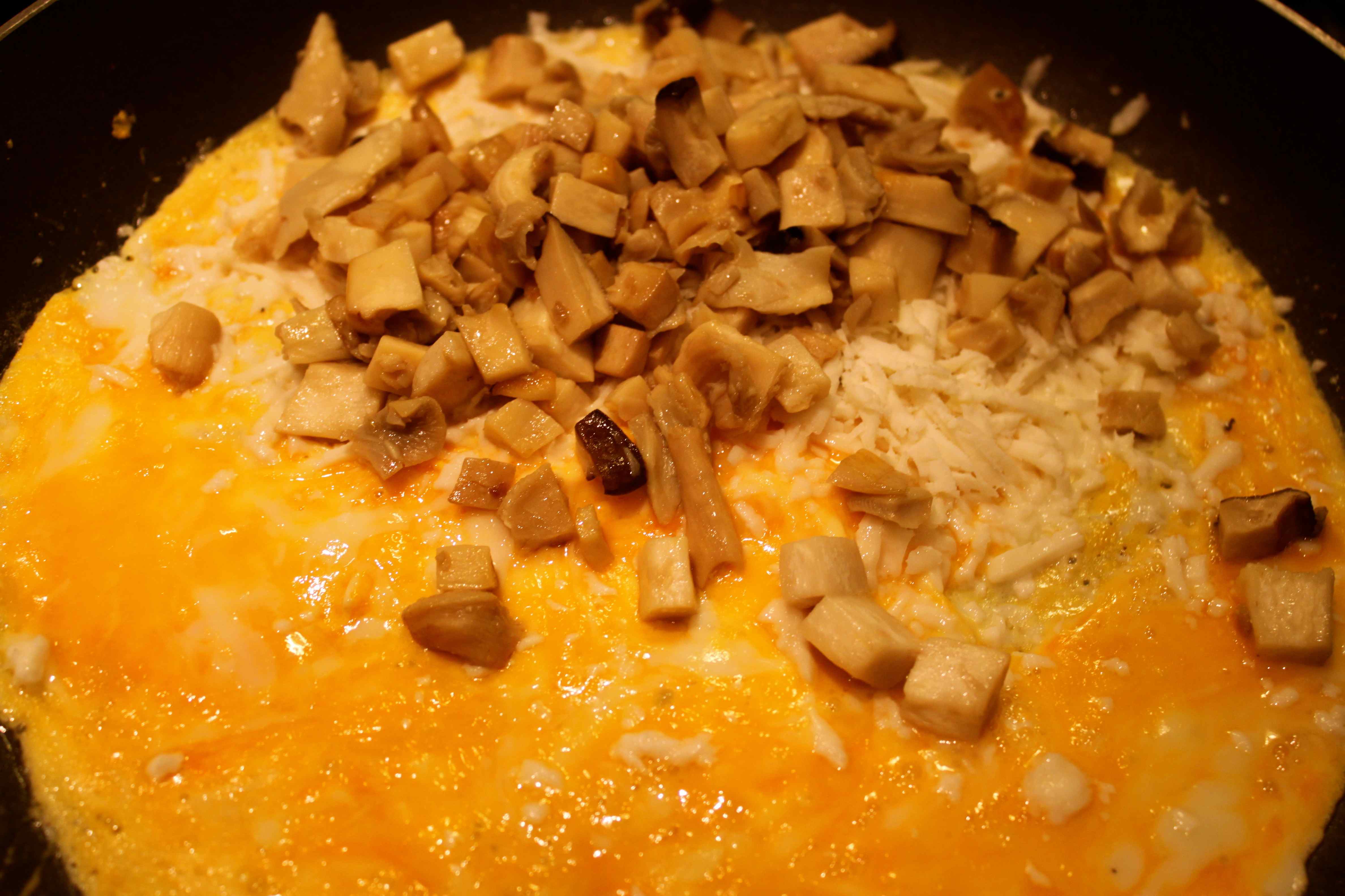 Simple supper of a mushroom omelette. I fried the oyster mushrooms in a little butter,