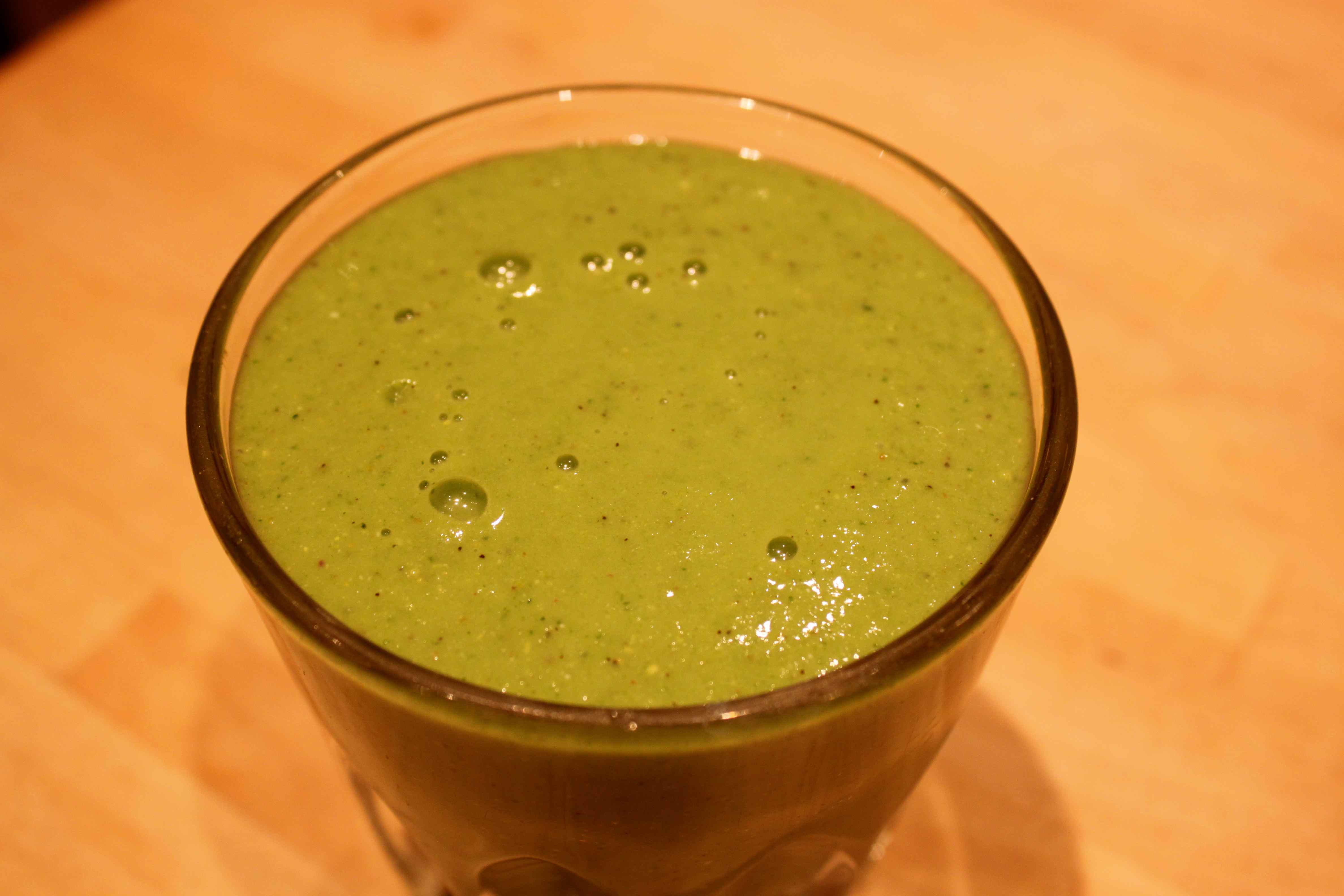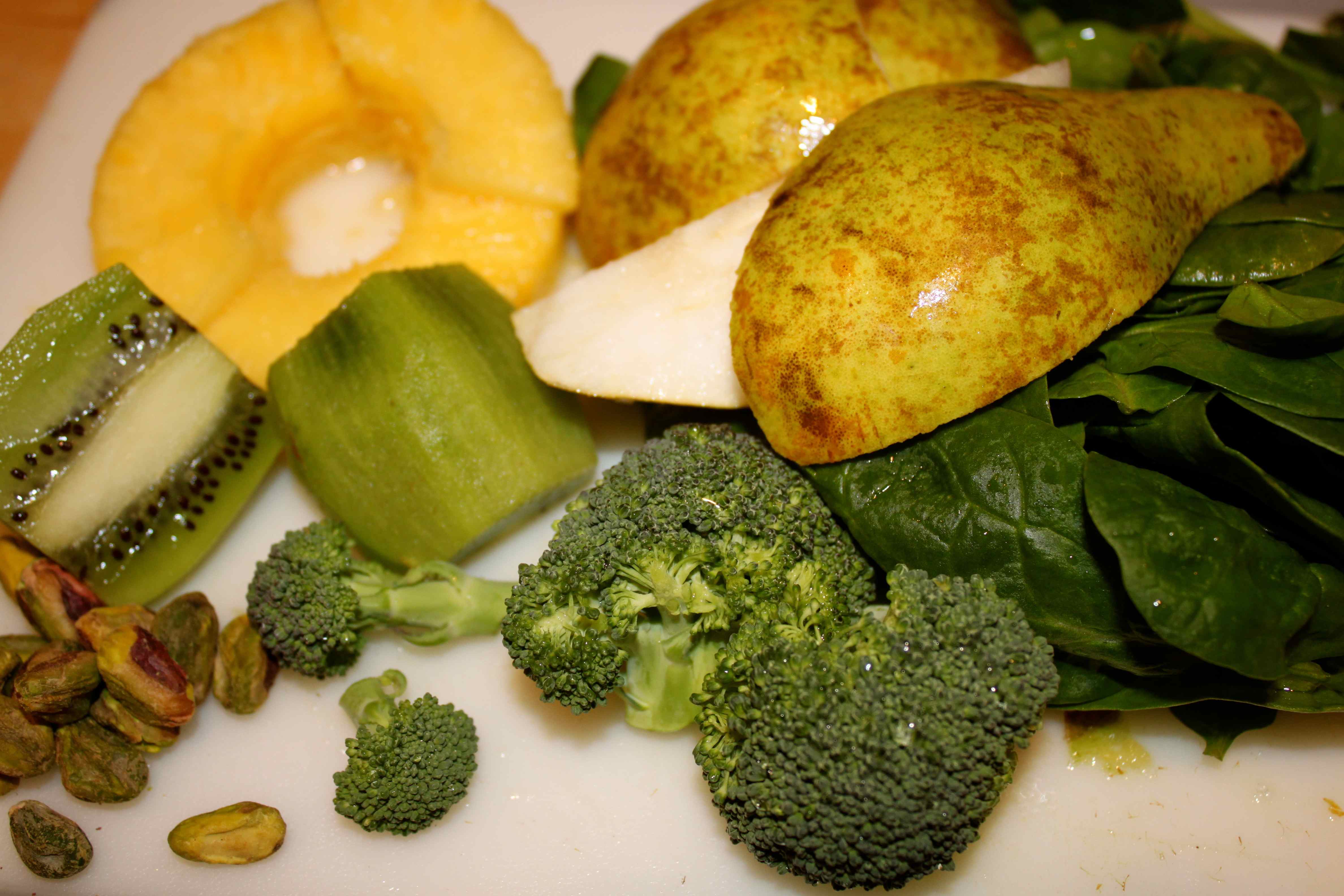 I also put in a pear, a kiwi fruit, some pistachio nuts, spinach and broccoli. All raw, just popped in to the blender.