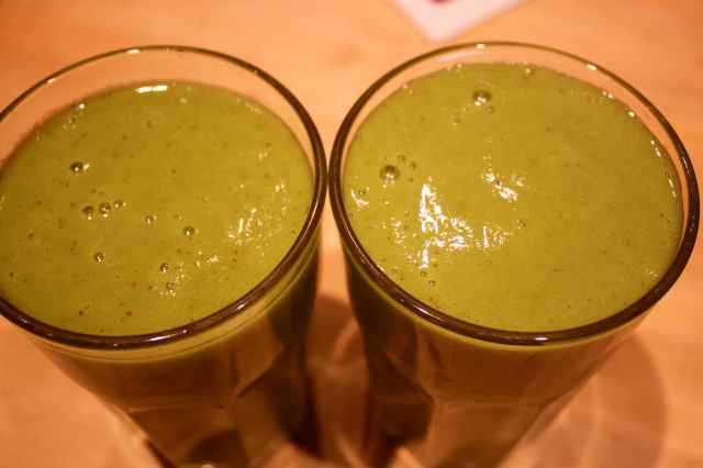 For variety, I was going to make a red smoothie tonight but Harvey chose a green one.