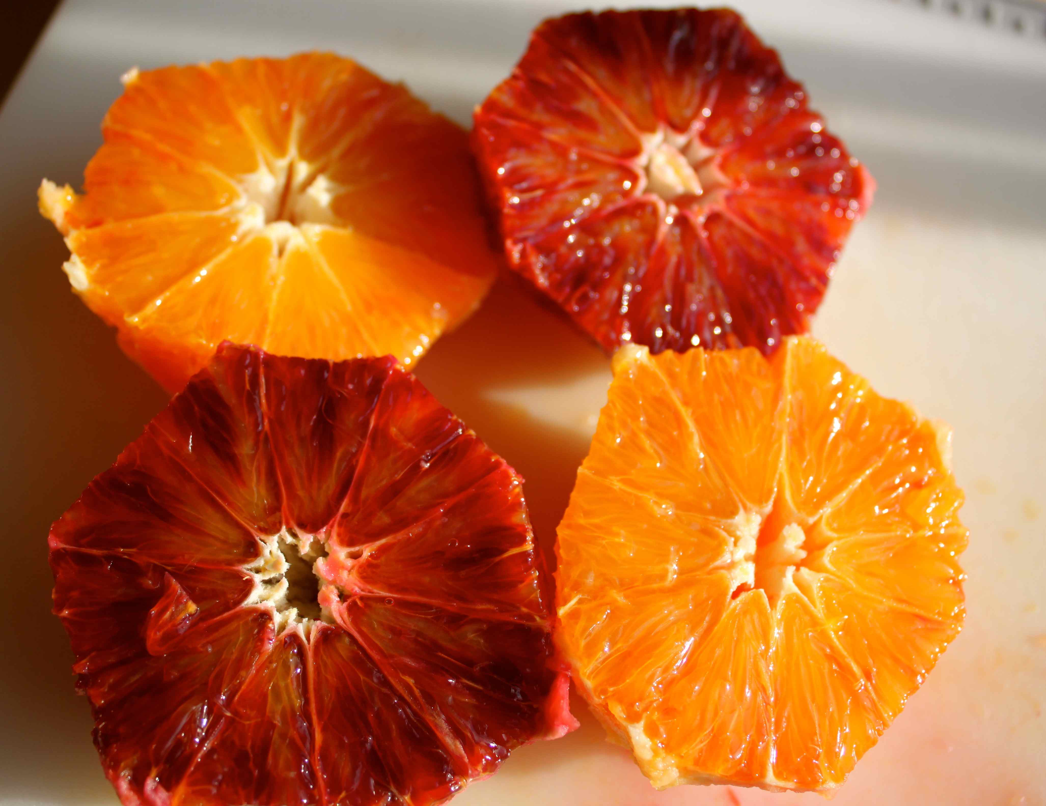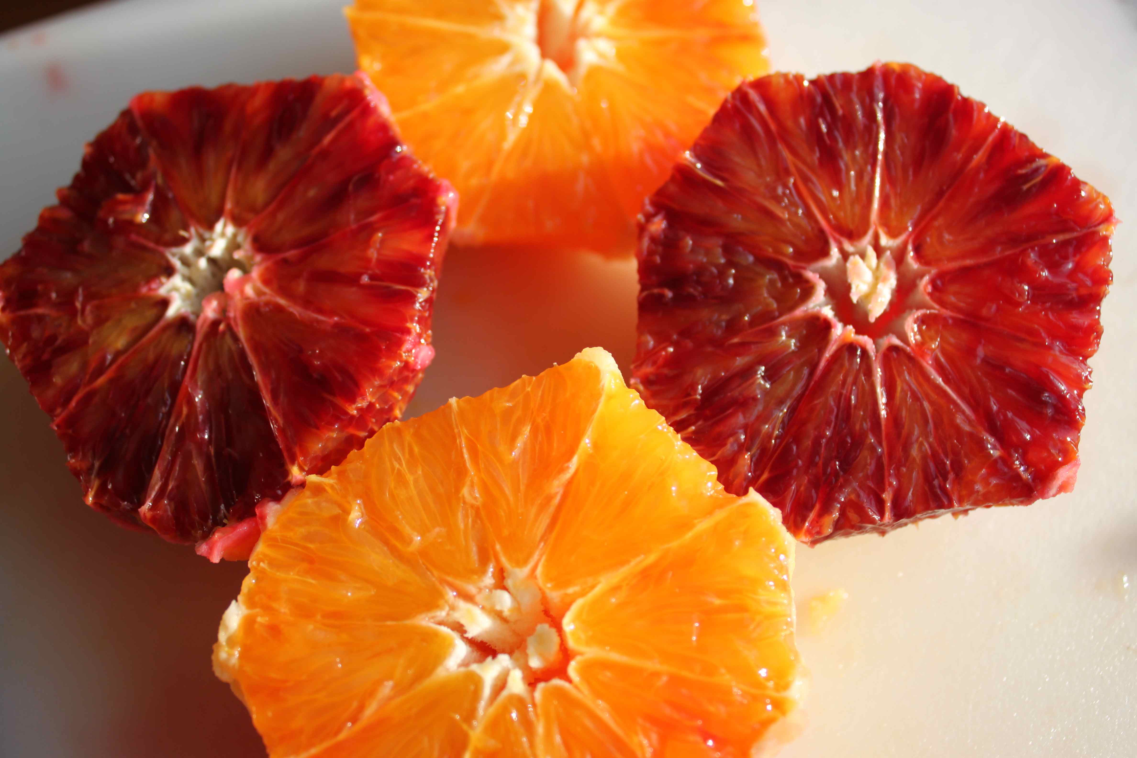 Blood oranges vary in colour from orange to blood red!
