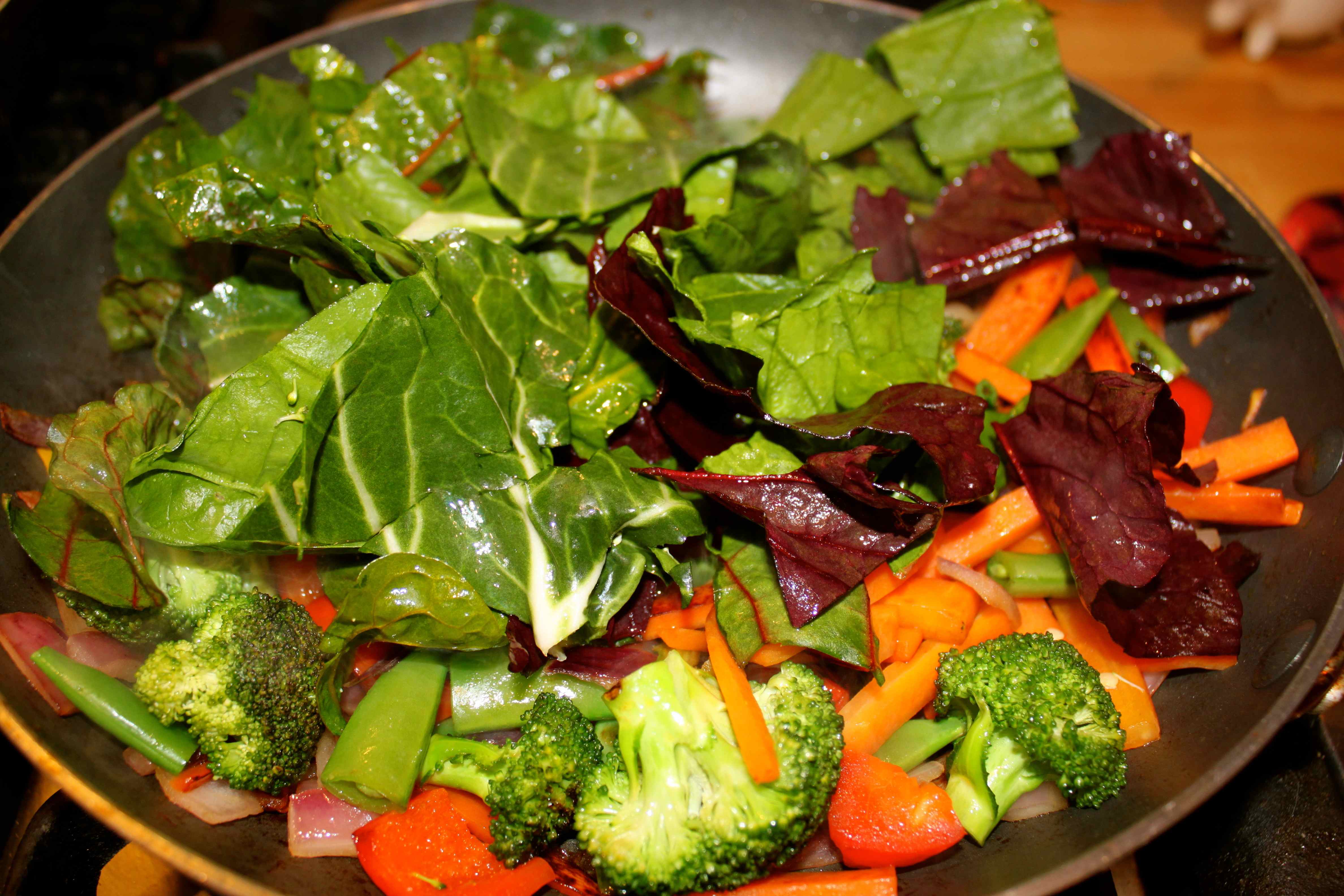 I added the chopped up leaves and lightly fried them until they began to wilt.
