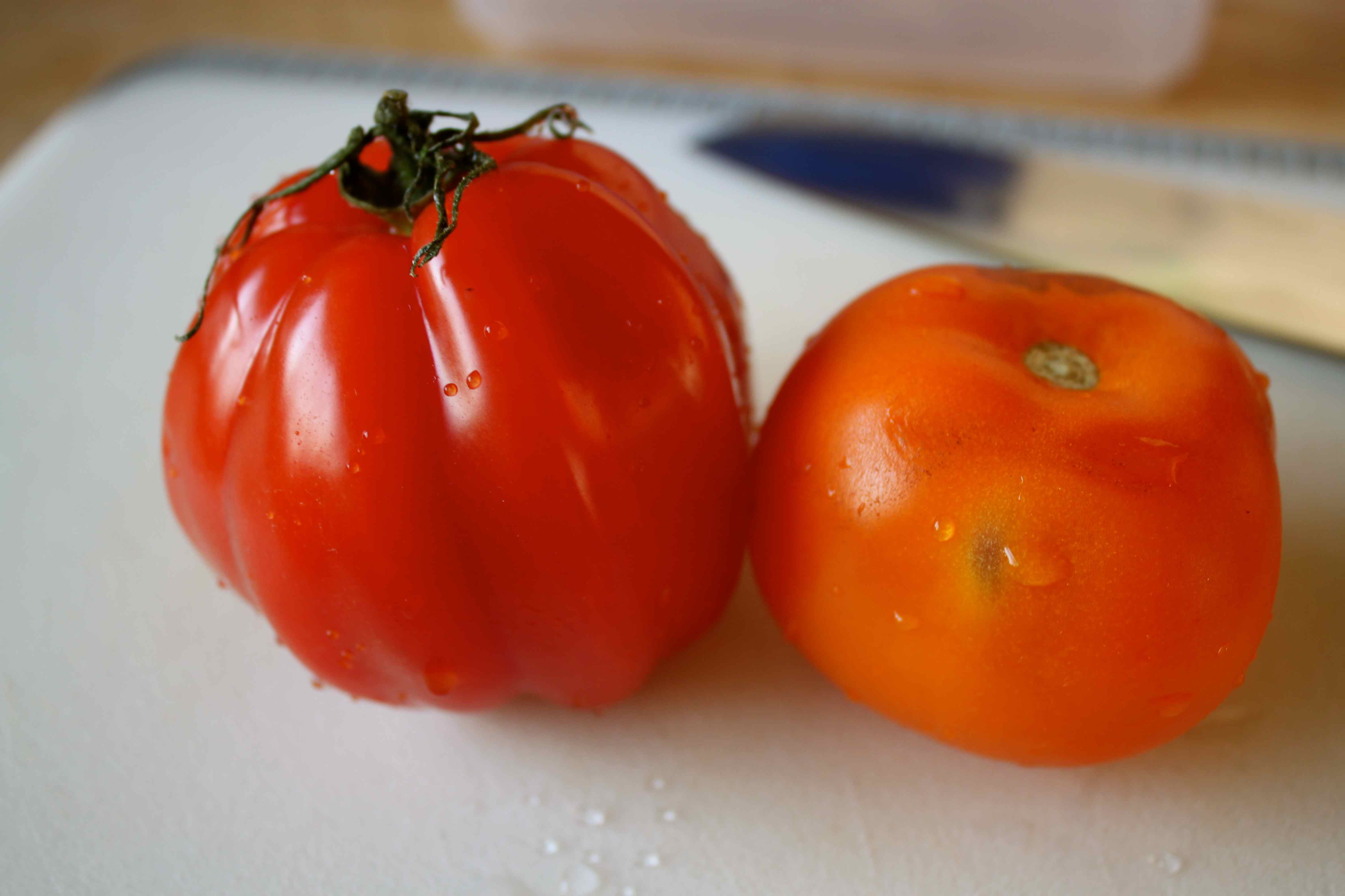 I also had time to make lunch to take. I was feeling like a Greek salad, so I started with 2 lovely tomatoes,