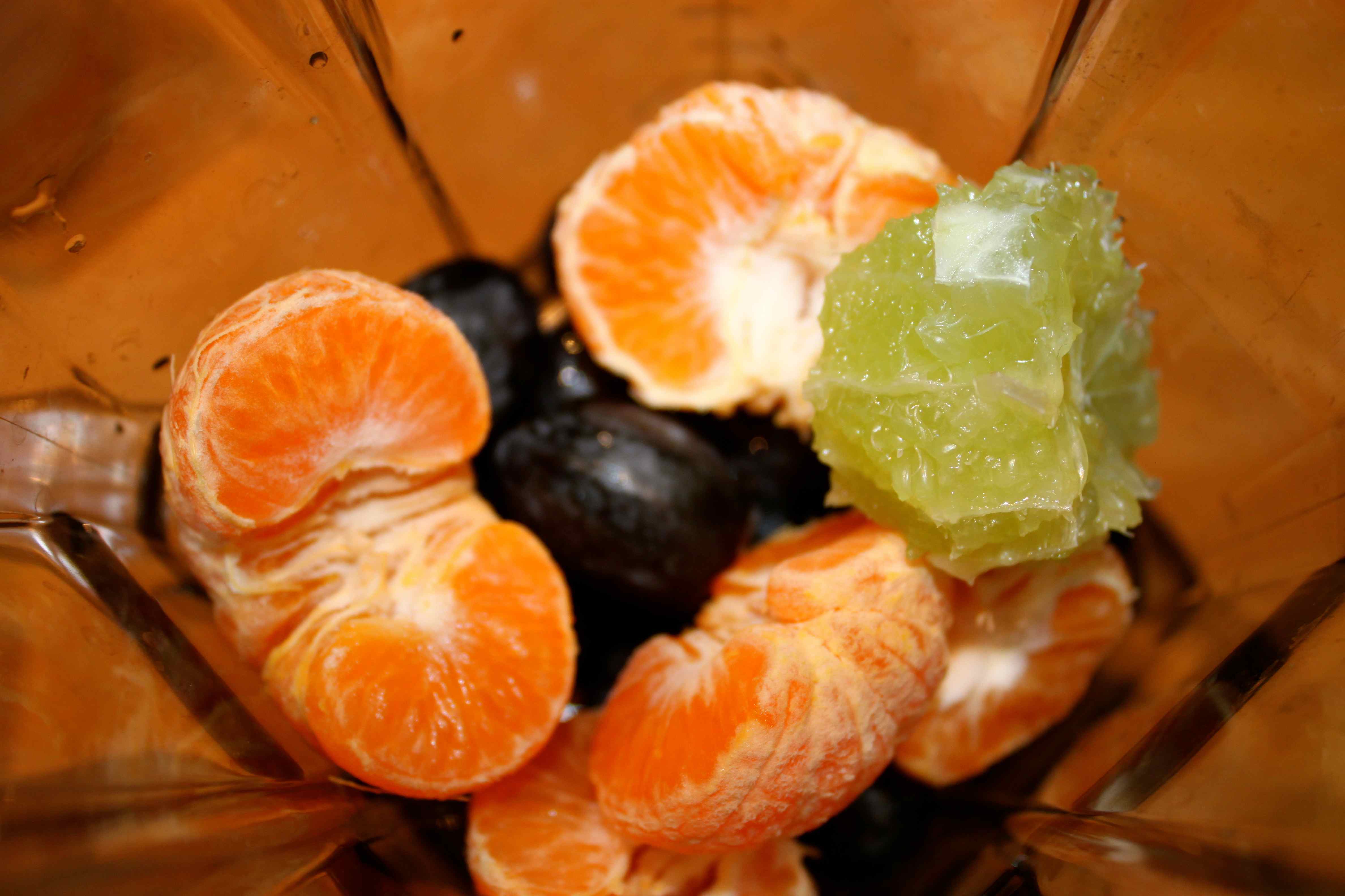 Tonights smoothie was some black grapes, 2 clementines, 1/2 a lime, 1/2 an avocado, 1/3 can of pumpkin puree, mineral water and ice cubes. No banana as the grapes were sweet enough.