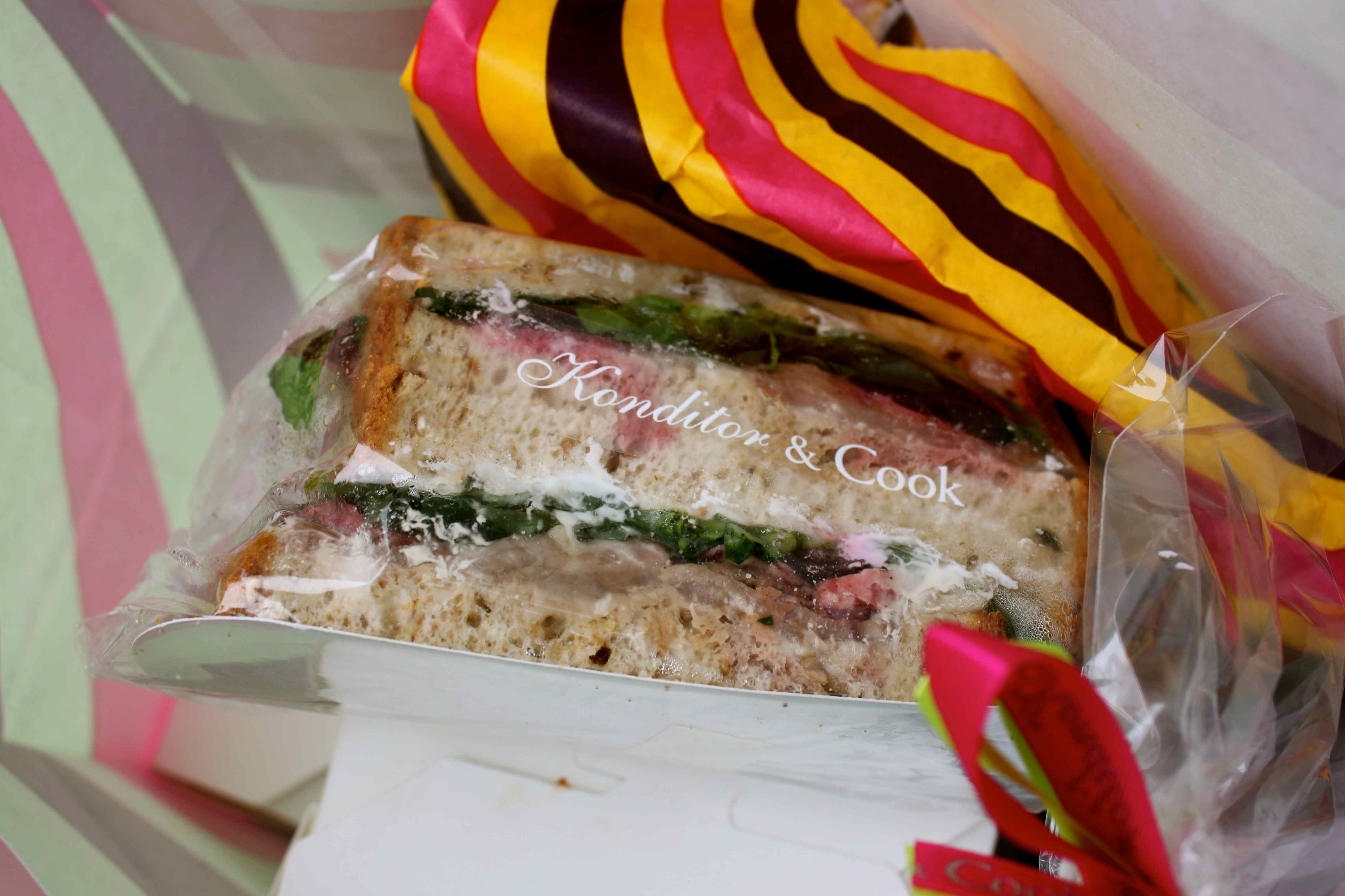 I emerged from Konditor & COOK with a massive bag of ……….. surprises 🙂 . And a rare roast beef with horseradish sandwich and a fudge brownie which did not exist long enough for a photo. It was awesome but not as good as Monmouth’s.
