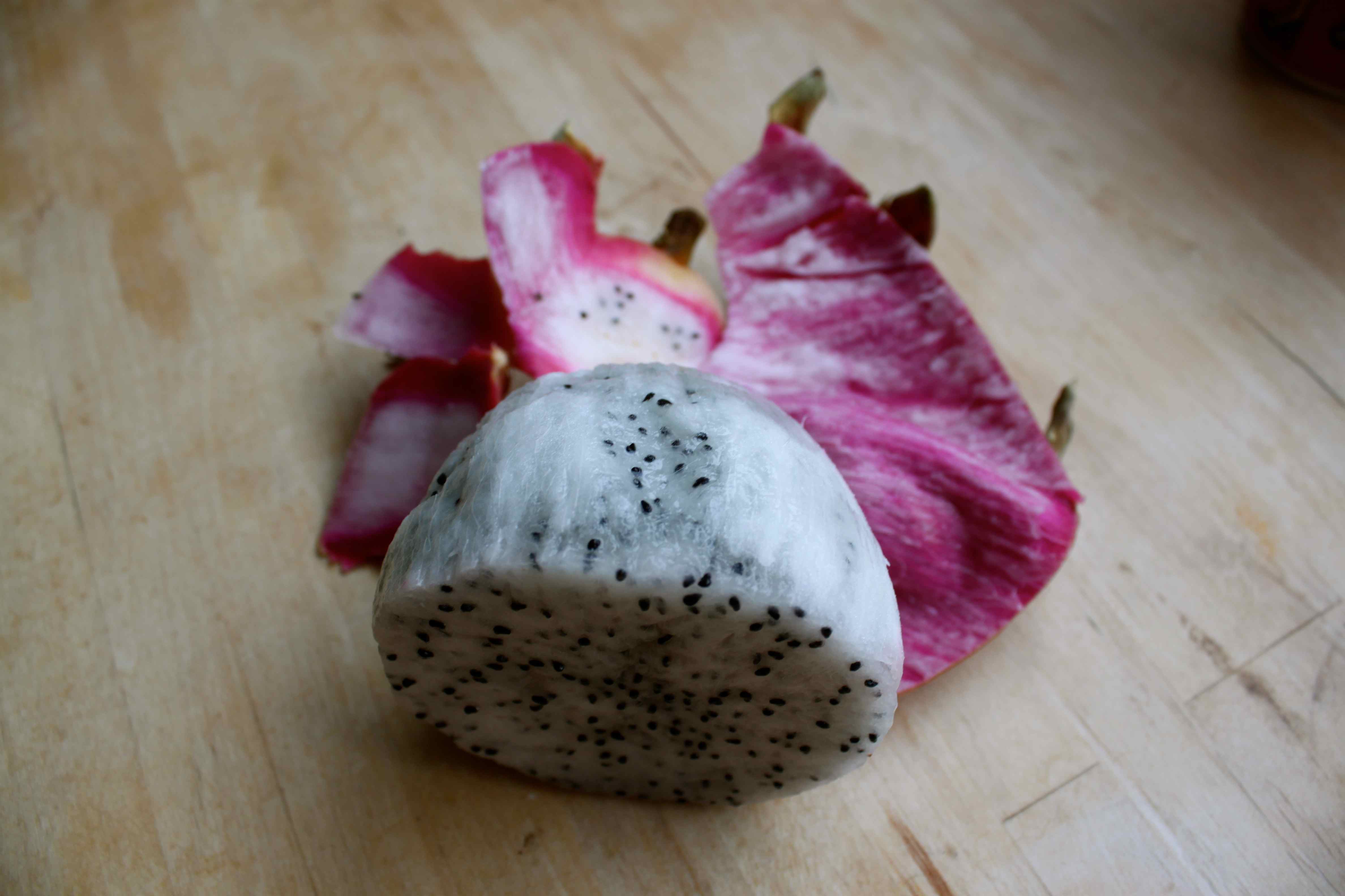 I felt still full and fat when I woke up today so I had a light and refreshing smoothie to start the day. I was clearing out the fridge and ate up left overs, such as this half of a dragon fruit,