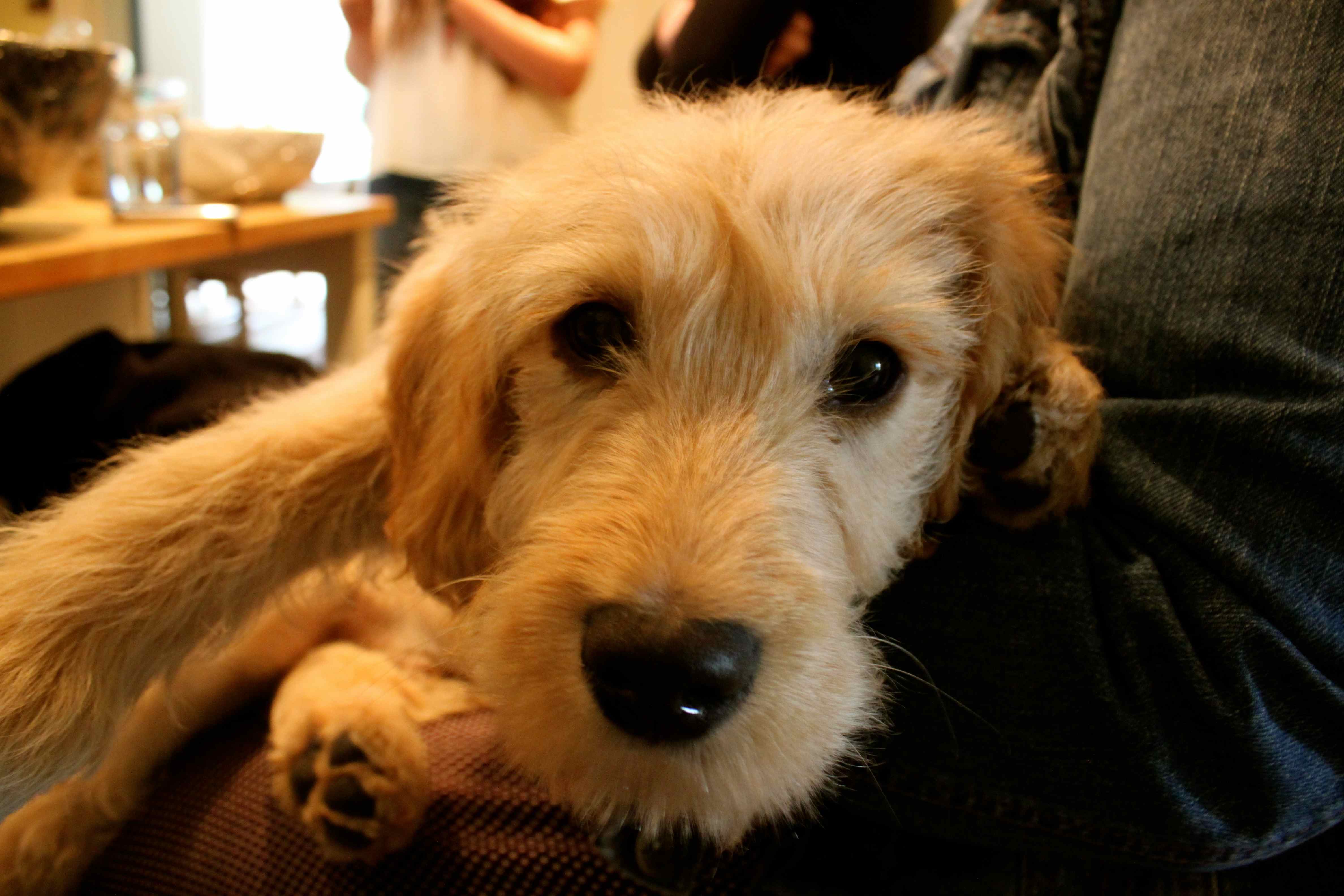 He is sooooo gorgeous. Allegedly he is a miniature Labradoodle. Lucy and I both have large Labradoodles and not wanting to worry Michelle, but, Ted looks bigger than ours did at that age – he is only 16 weeks old!!