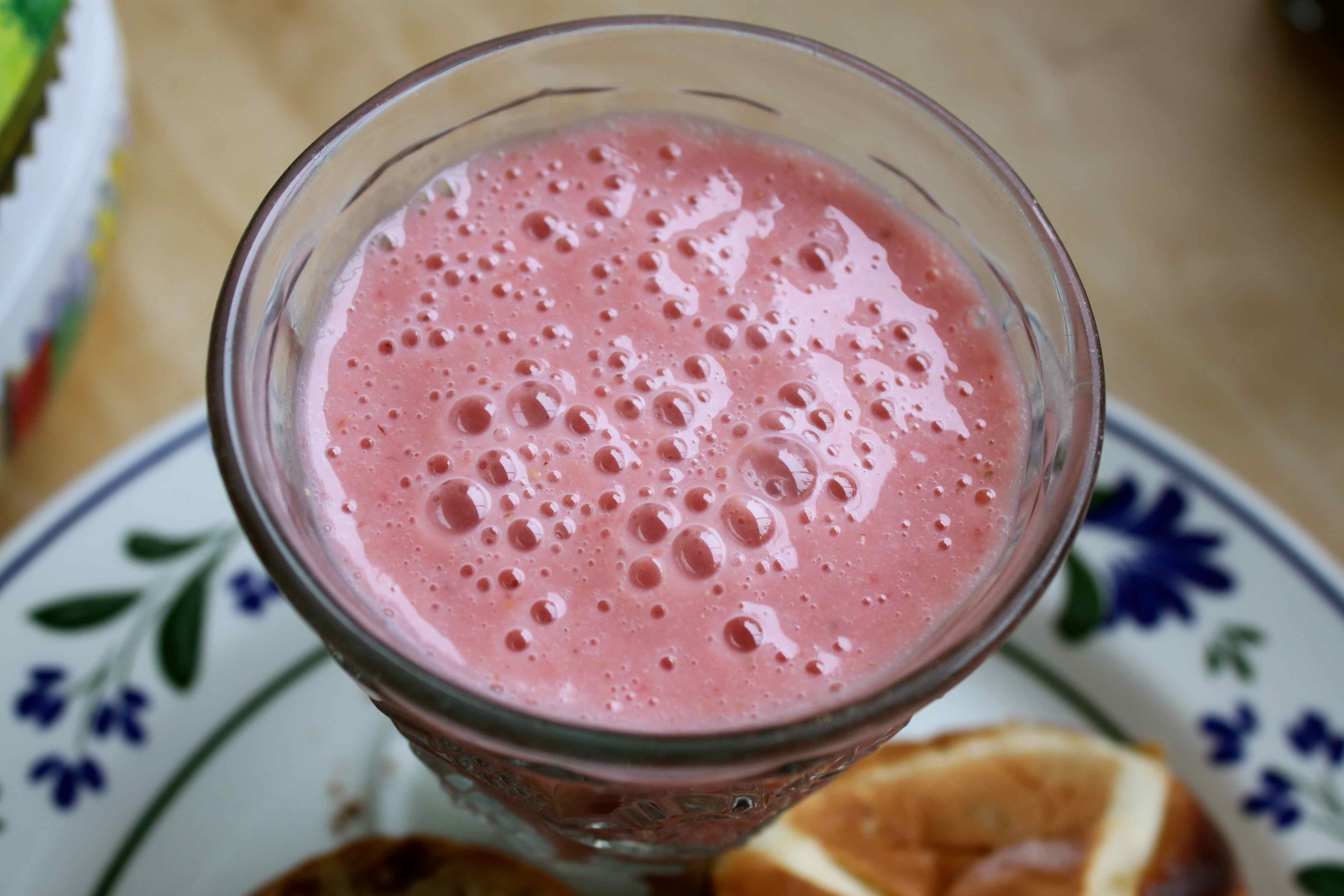 The smoothie is Harvey’s smoothie of choice and is just strawberries, banana and almond milk.