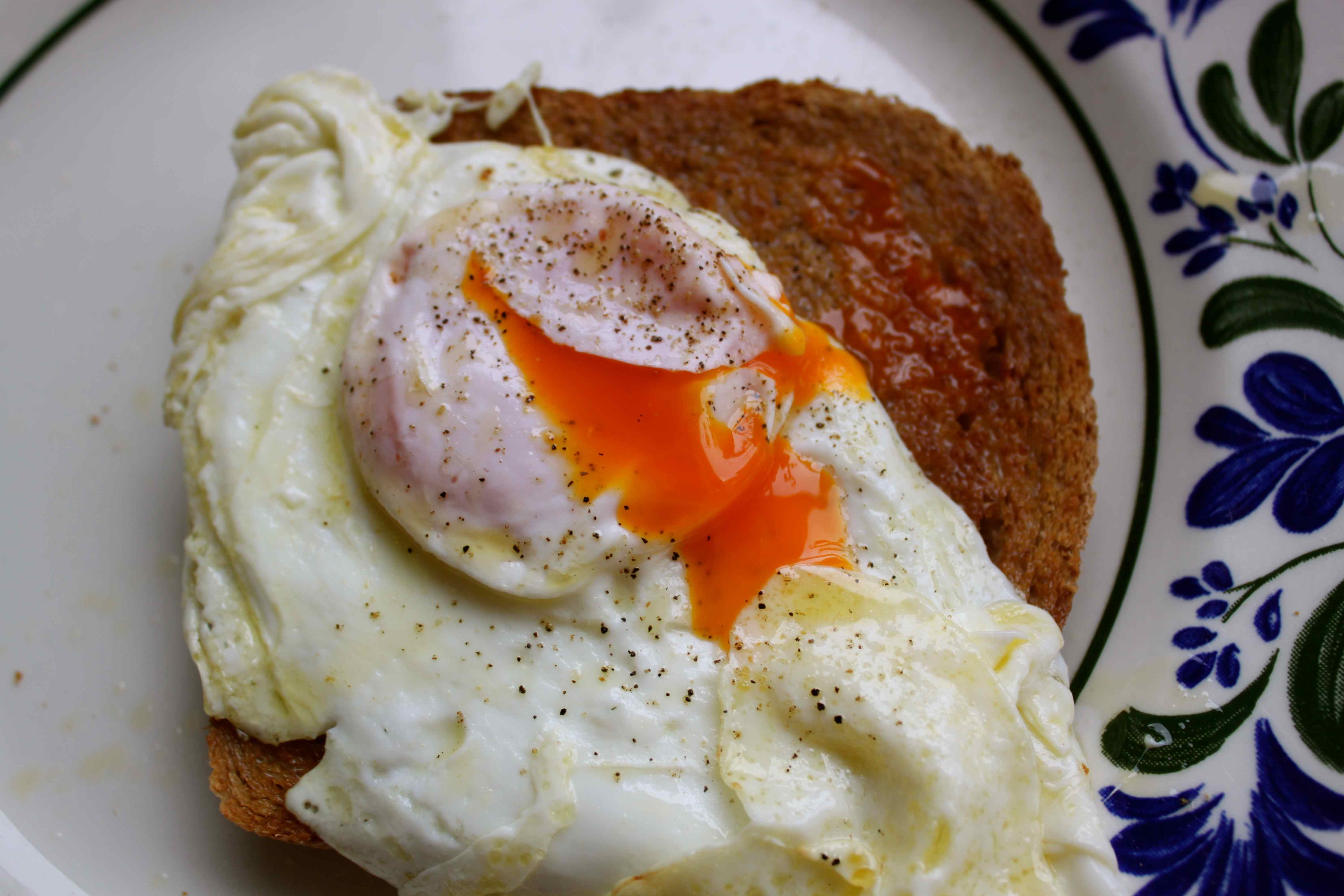 For breakfast my young man and I had a slice of wholemeal bread, toasted and buttered with a fried egg.