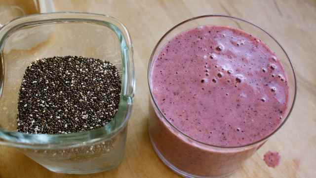 and added half of the rest to the blender with strawberries, blueberries, a banana, some chia seeds and almond milk. Oh yes, that was a yummy one.