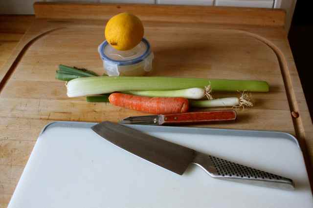 So last night I prepared for today to be a healthy start again. When I came downstairs this morning, there were some vegetables ready washed beside the chopping board, peeler and knife. All laid out ready from the night before.
